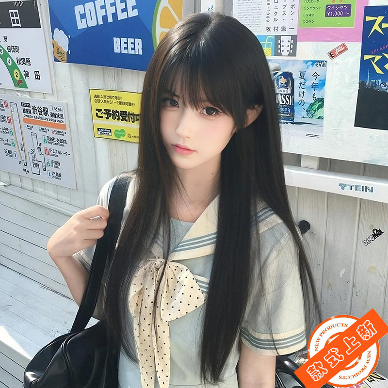假发女生全头套自然减龄长直发Lolita齐刘海万用cos圆脸jk黑长直