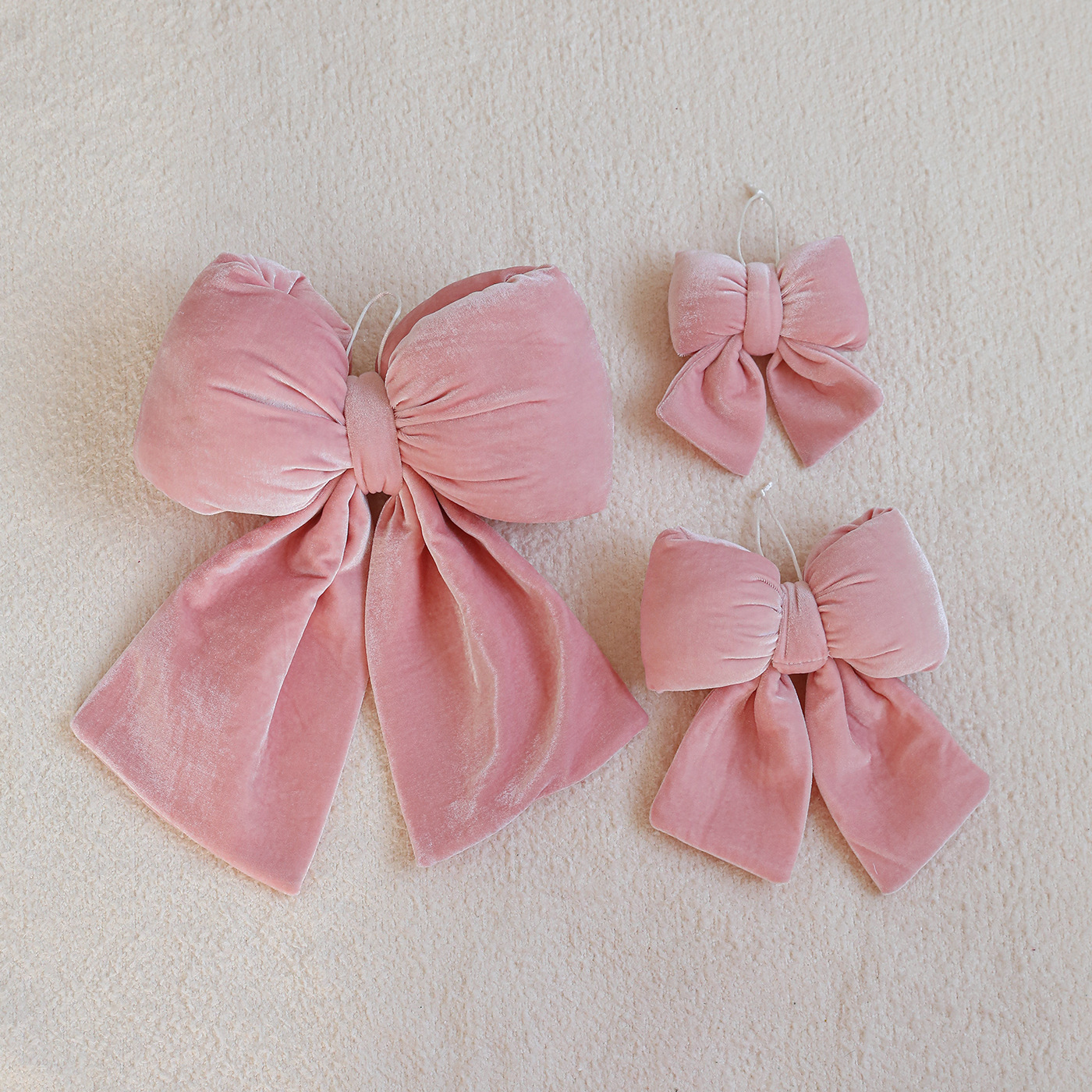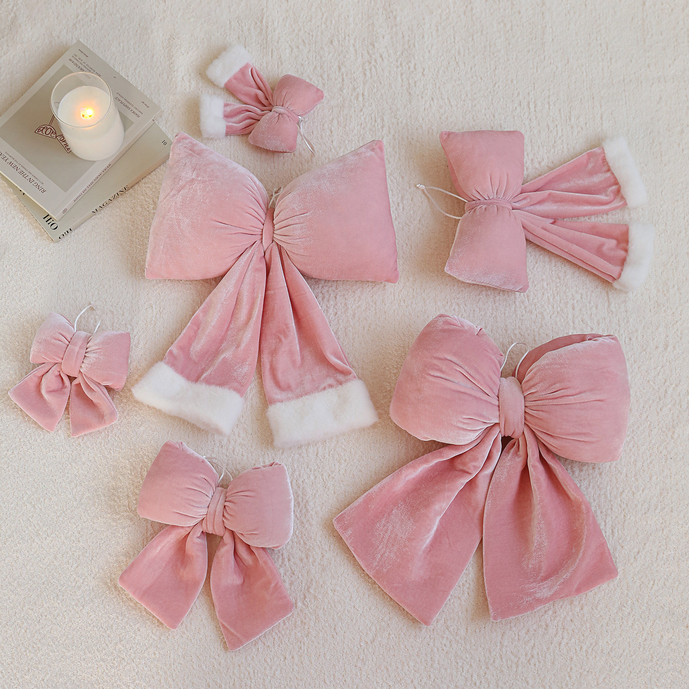 新款圣诞蝴蝶结粉色圣诞节挂件绒布婚庆布置装饰圣诞树挂饰布置