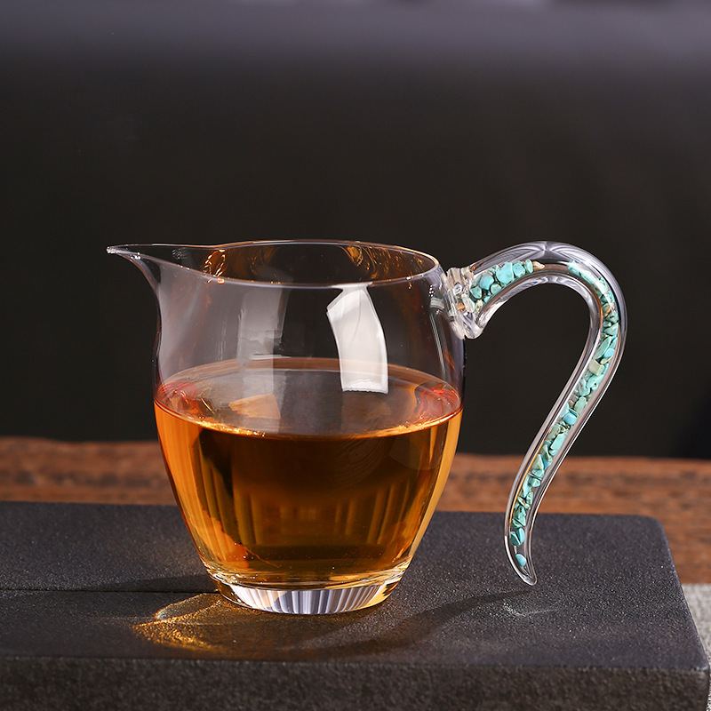 ガラス正義杯水晶公平杯高級分茶器緑松石流砂高級大容量茶公杯