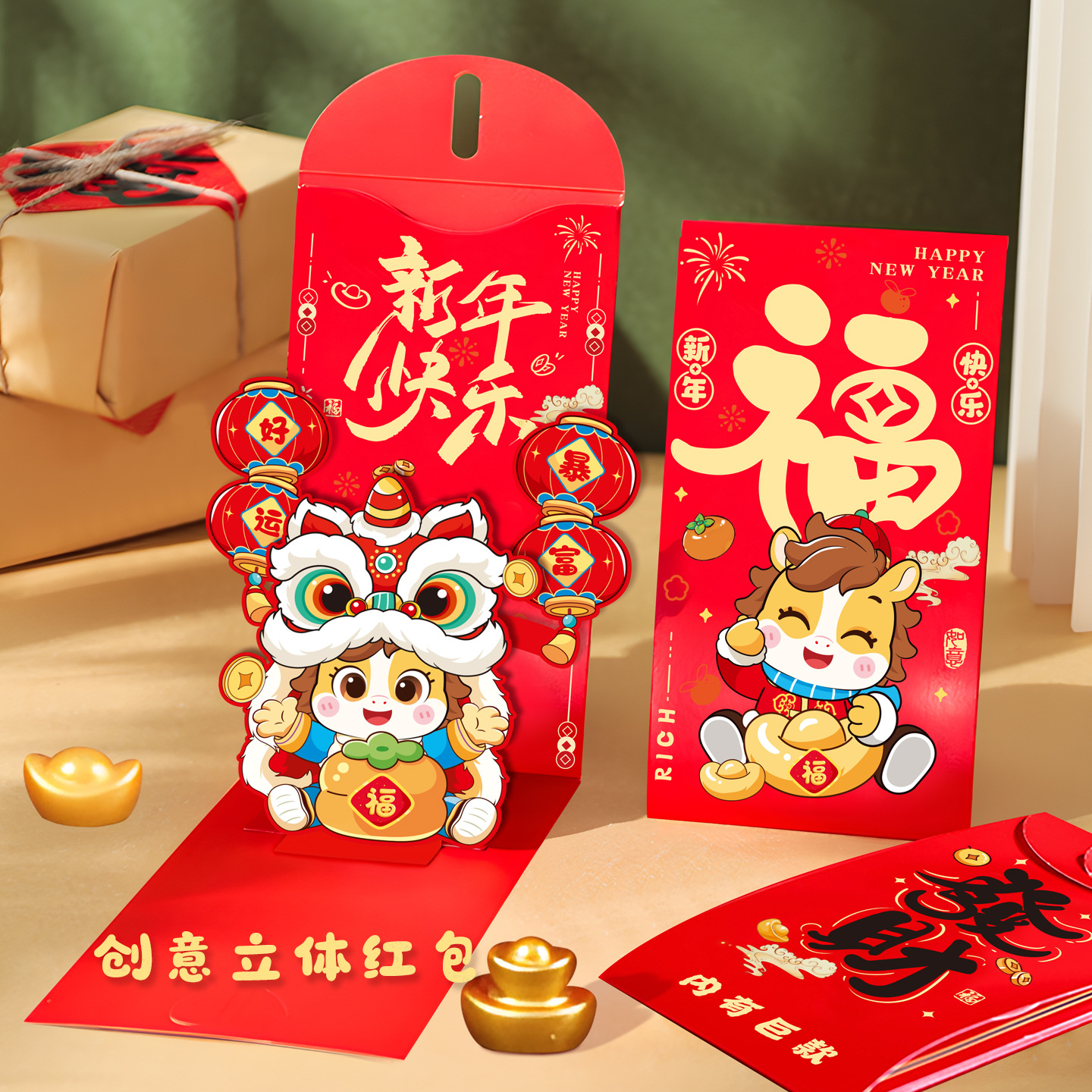 马年创意3D立体红包袋2026新款利是封包折叠过年新春节压岁钱包