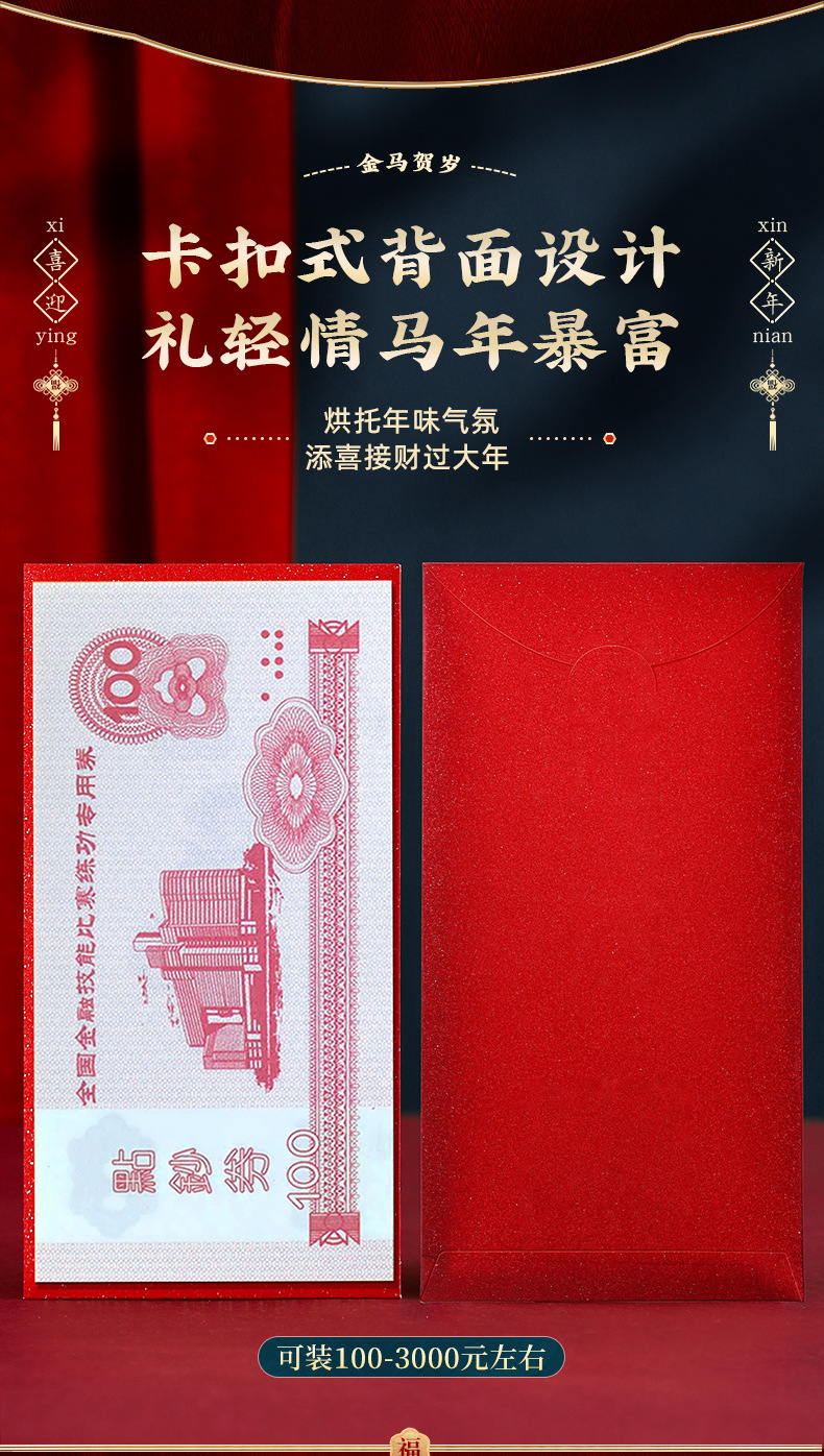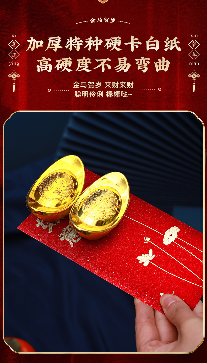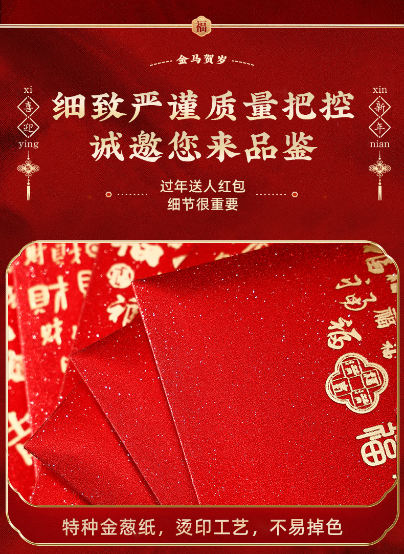 2026年新年紅包 馬年福袋 キラキラ春節お年玉袋 熱転写加工 高級千元紅包袋