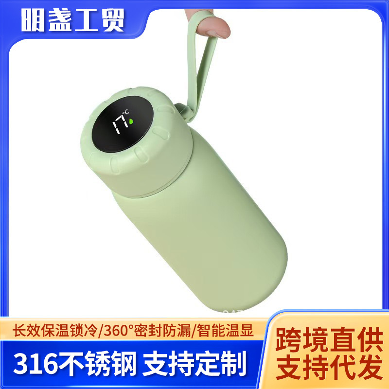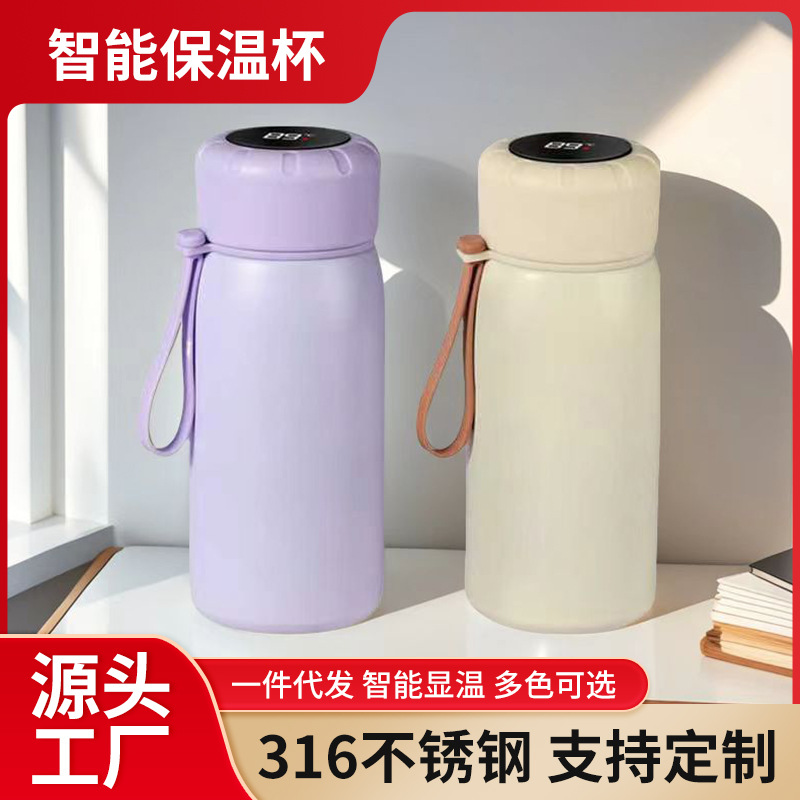 新款316不锈钢智能显温咖啡杯小巧便携保温杯户外提绳学生杯