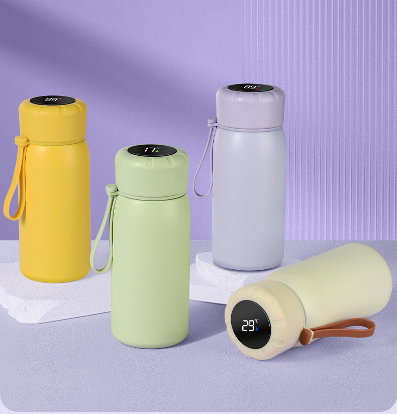 316ステンレス鋼製保温カップ、学生用ウォーターカップ、スマート温度表示、持ち運び用ストラップ付き、便利で持ち運び可能なカップ