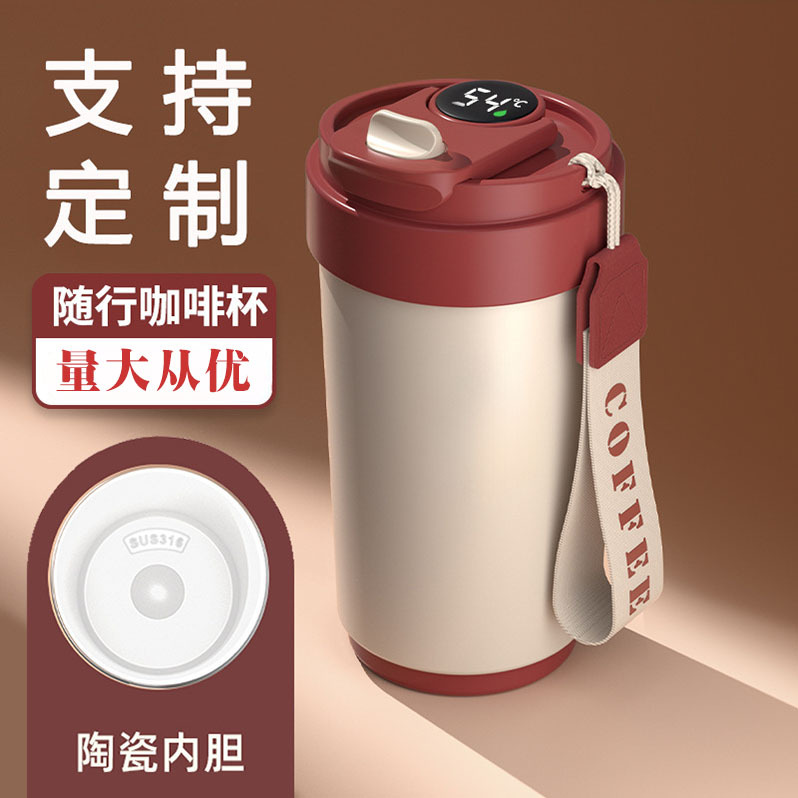 316ステンレス鋼製保温カップ、セラミック内胆、コーヒーカップ、車載用、ポータブル、スマート温度表示、持ち運び用カップ、ロゴ入り