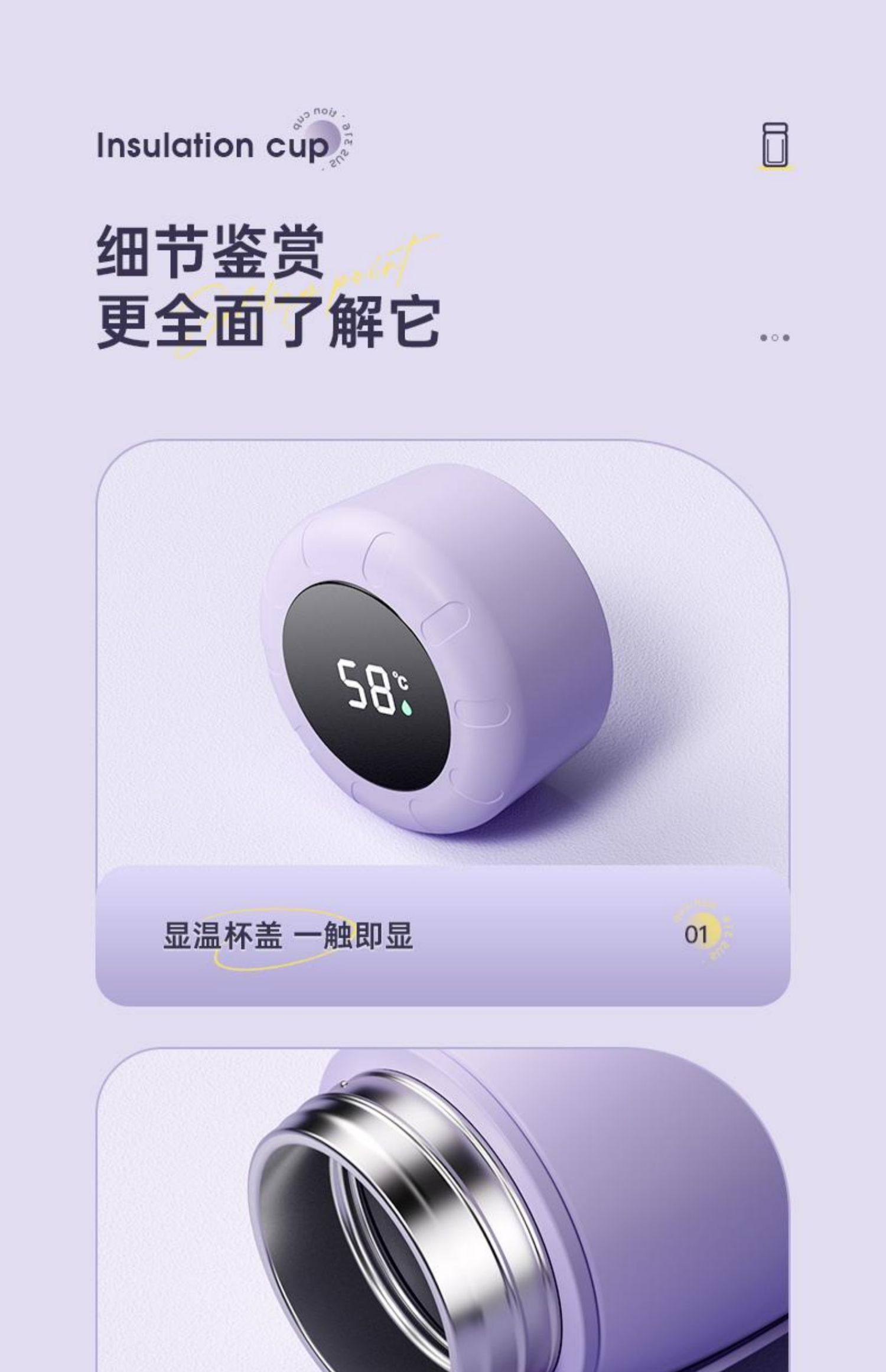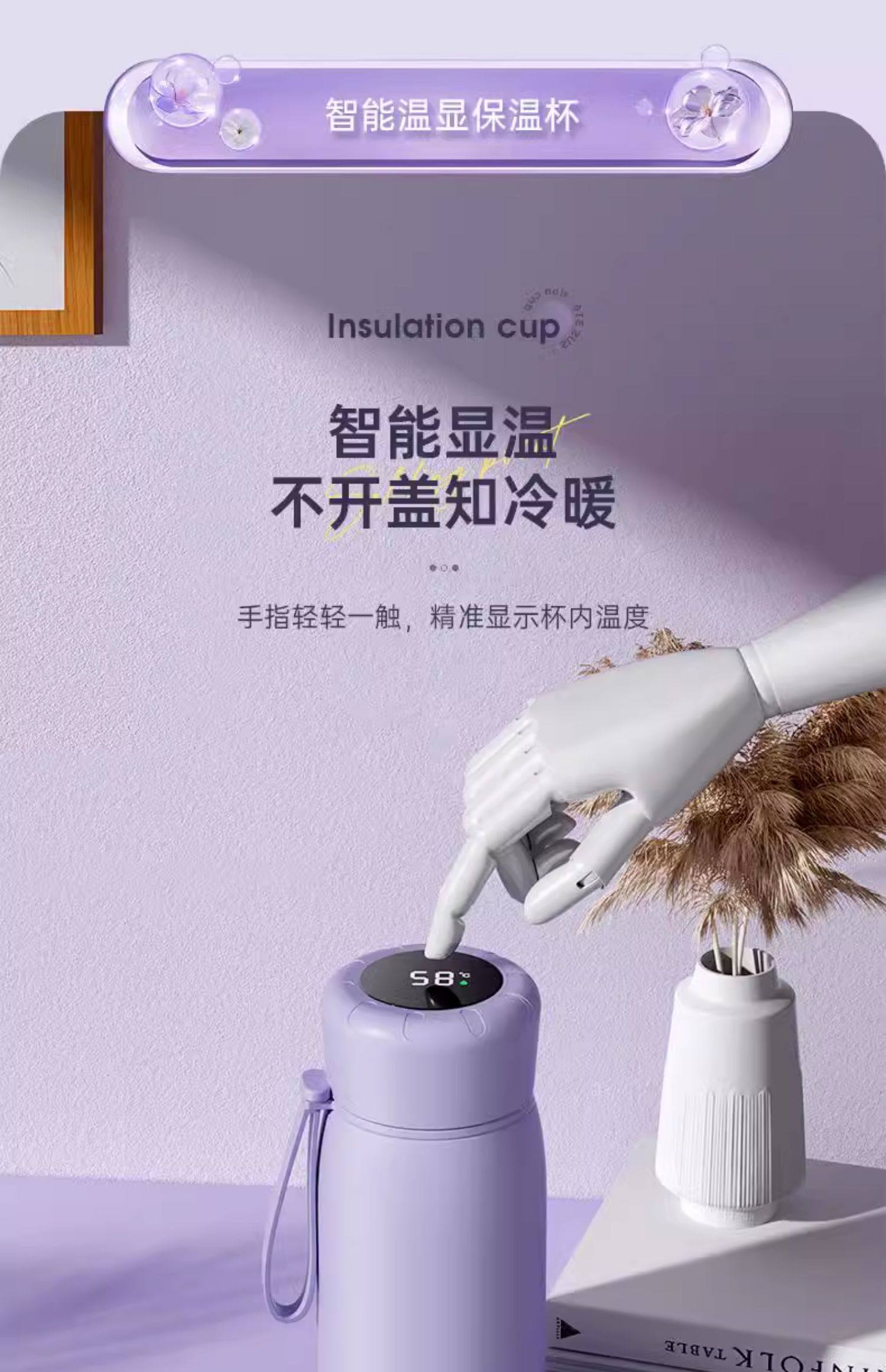 食品级316不锈钢智能显温保温杯新款大容量便携高颜值学生保温杯
