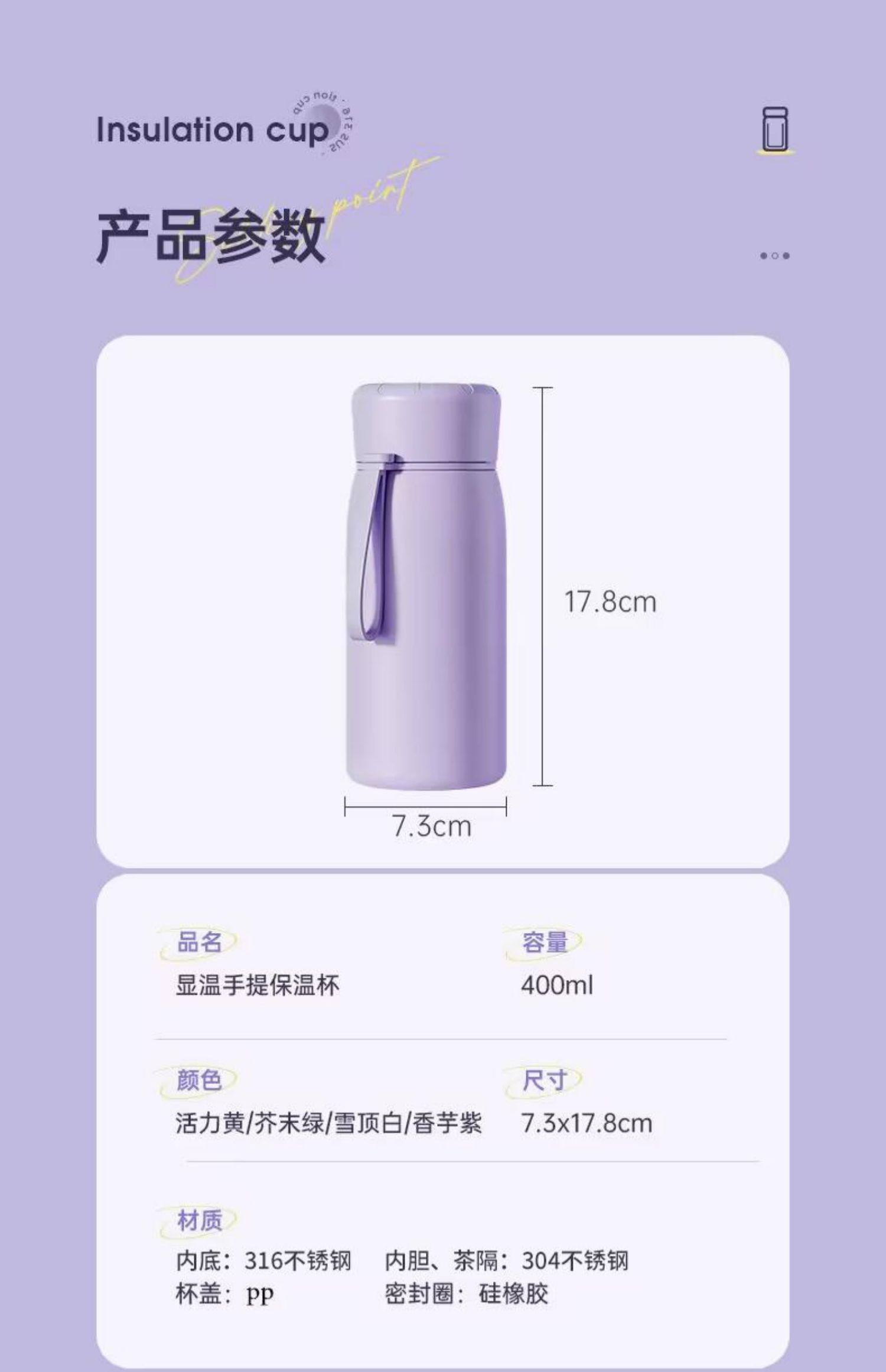颜色 316感应显温-奶芙白【送茶隔+挂绳】,316感应显温-柠檬黄【送茶隔+挂绳】,316感应显温-橄榄绿【送茶隔+挂绳】,316感应显温-典雅紫【送茶隔+挂绳】,316感应显温-富贵红【送茶隔+挂绳】