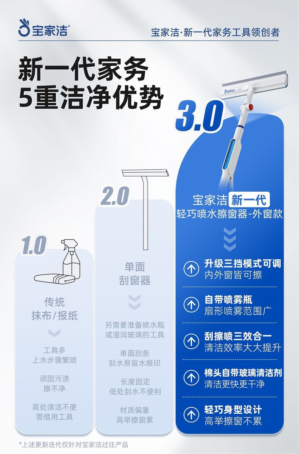 擦玻璃神器宝家洁家用高层专用保洁刮水器2025新款擦窗户清洁工具