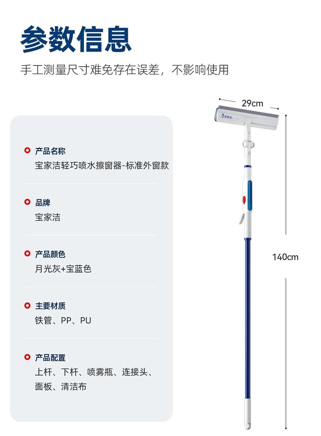 规格 29CM面板【喷擦一体+可擦外窗】1.4m长杆+扇形喷雾【共1块棉】,29CM面板【喷擦一体+可擦外窗】1.4m长杆+扇形喷雾【共3块棉】,29CM面板【喷擦一体+可擦外窗】1.4m长杆+扇形喷雾【共5块棉】,33CM面板【喷擦一体+可擦外窗】1.4m长杆+扇形喷雾【共1块棉】,33CM面板【喷擦一体+可擦外窗】1.4m长杆+扇形喷雾【共3块棉】,33CM面板【喷擦一体+可擦外窗】1.4m长杆+扇形喷雾【共5块棉】,原装替换棉头*2块