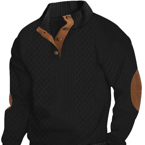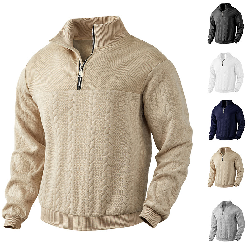 2025跨境热销秋冬季欧码男士户外休闲立领长袖提花针织套头卫衣潮