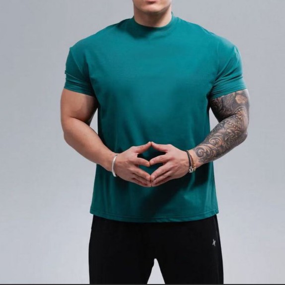 筋肉メンズ夏新作スポーツカジュアルランニングトレーニングトレーニング速乾通気無地半袖tシャツ
