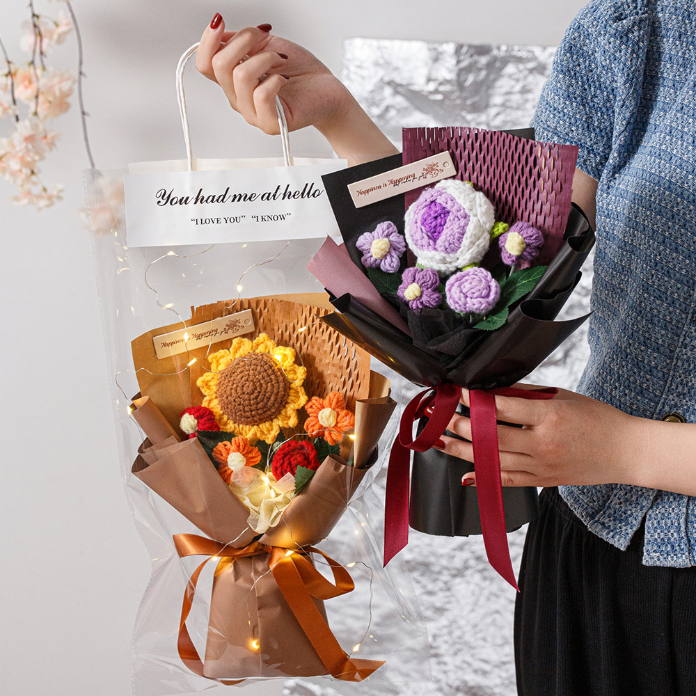 针织毛线小花束成品手钩织向日葵玫瑰仿真永生花小学老师礼物批发