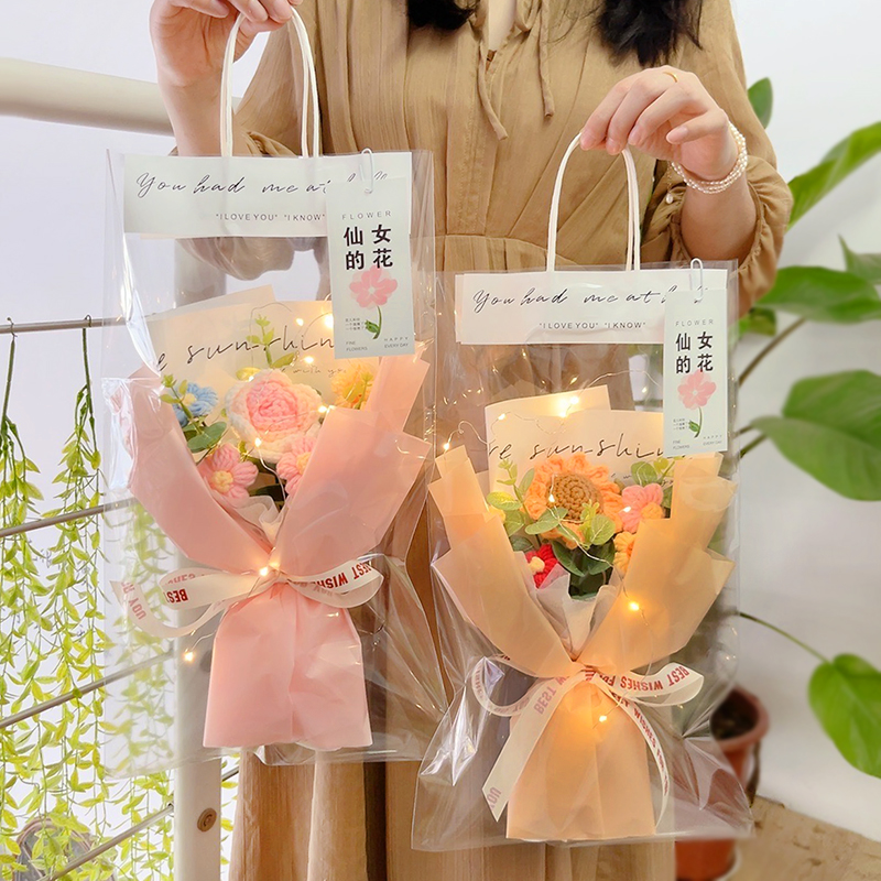 バレンタインデー、クリスマス、小香風ニットパフフラワー、手作り完成品、毛糸小花束ギフト、卸売、越境販売