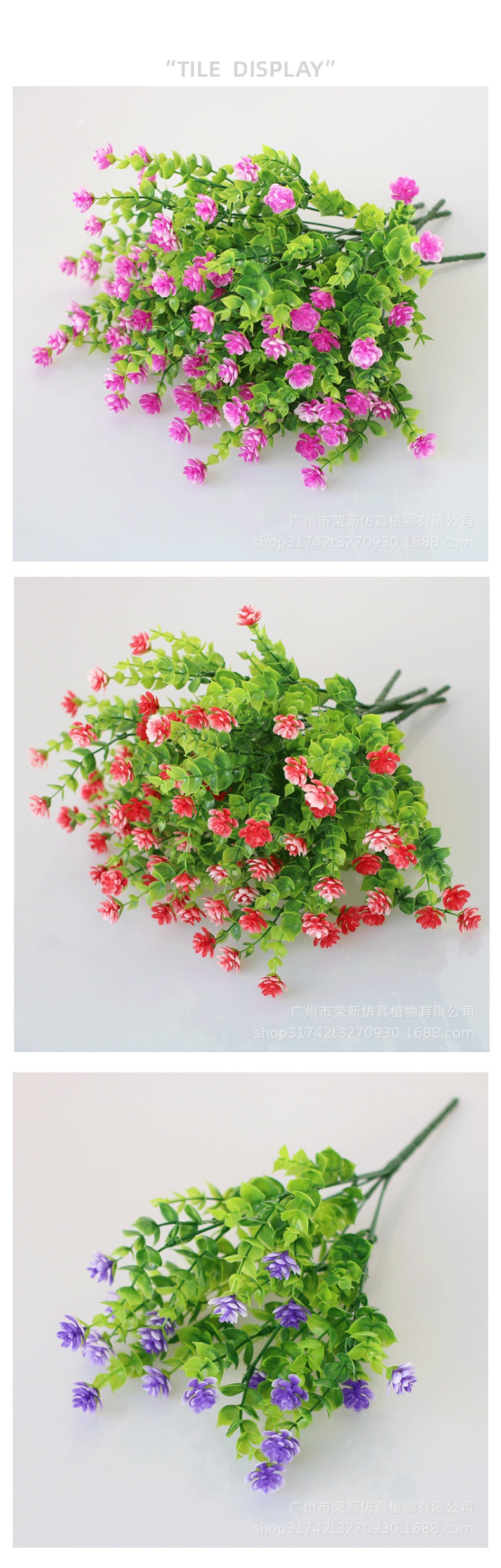 现货亚马逊尤加利茶花 仿真茶花满天星仿真花 七叉尤加利玫瑰把束