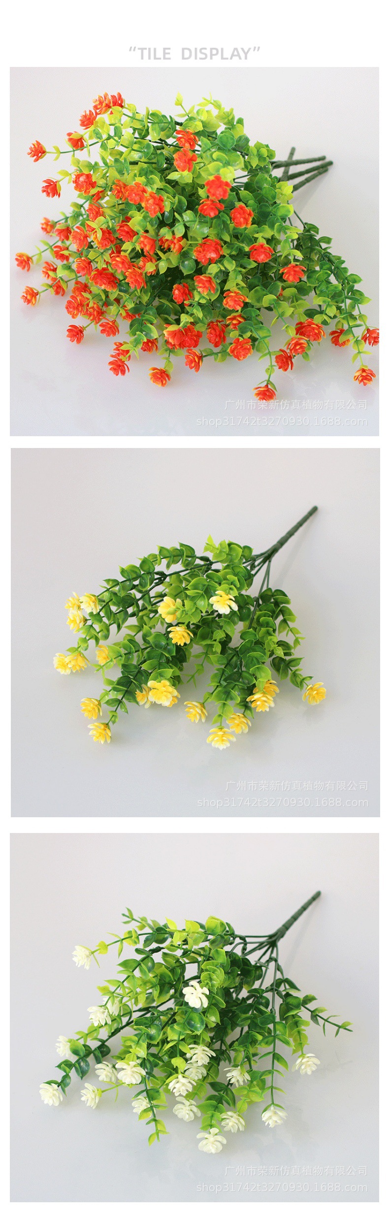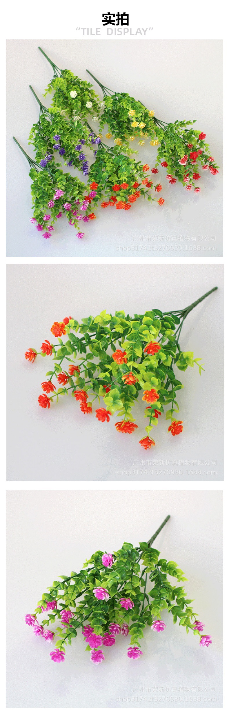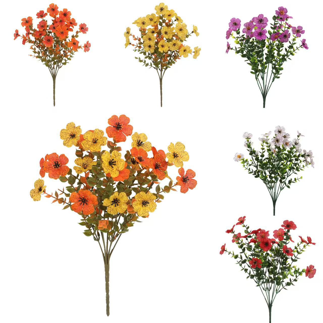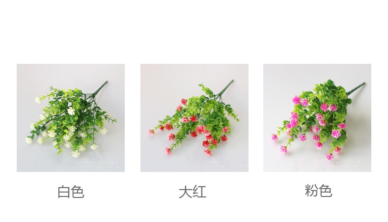 跨境爆款7叉仿真植物尤加利满天星插花绿植茶花 亚马逊户外装饰
