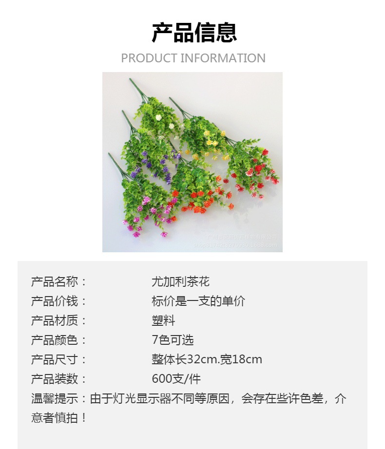メーカー卸売り人工緑植尤加利茶花屋外花溝生け花装飾プラスチック花シミュレーション緑植物