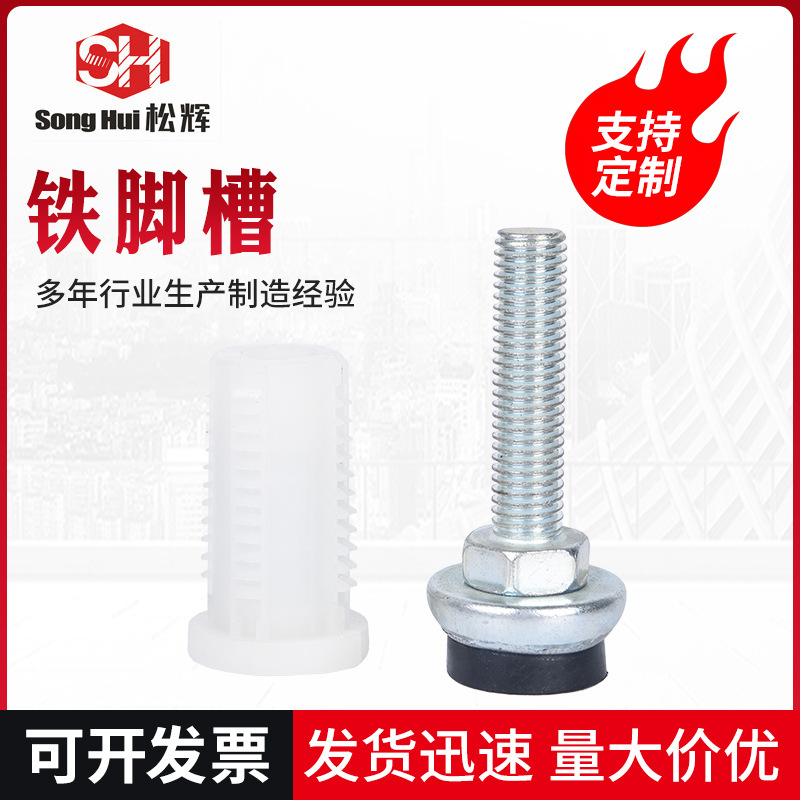 メーカーの卸売り鉄足溝防振滑り止め鋼のプラスチックは、アンカーねじの黒地の安定した展示棚の調整足を調節することができます。