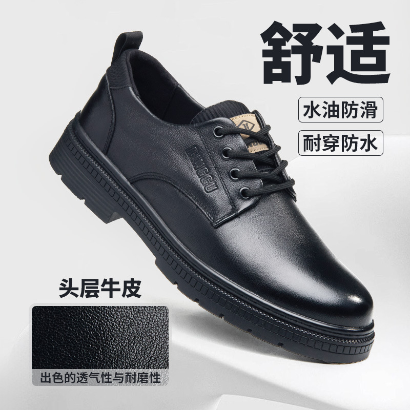 鼎固厨师鞋男款厨房防水防油劳保鞋男士酒店系带黑色厚底工作皮鞋