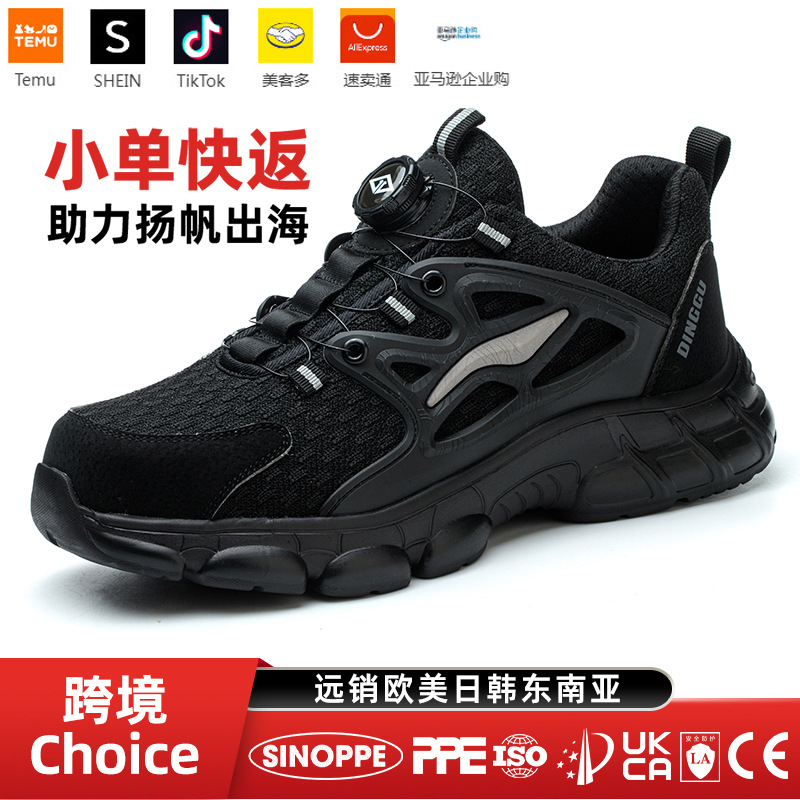 鼎固クロスボーダーChoice労働保護靴四季通気性飛織男防打防刺安全靴鋼包頭仕事