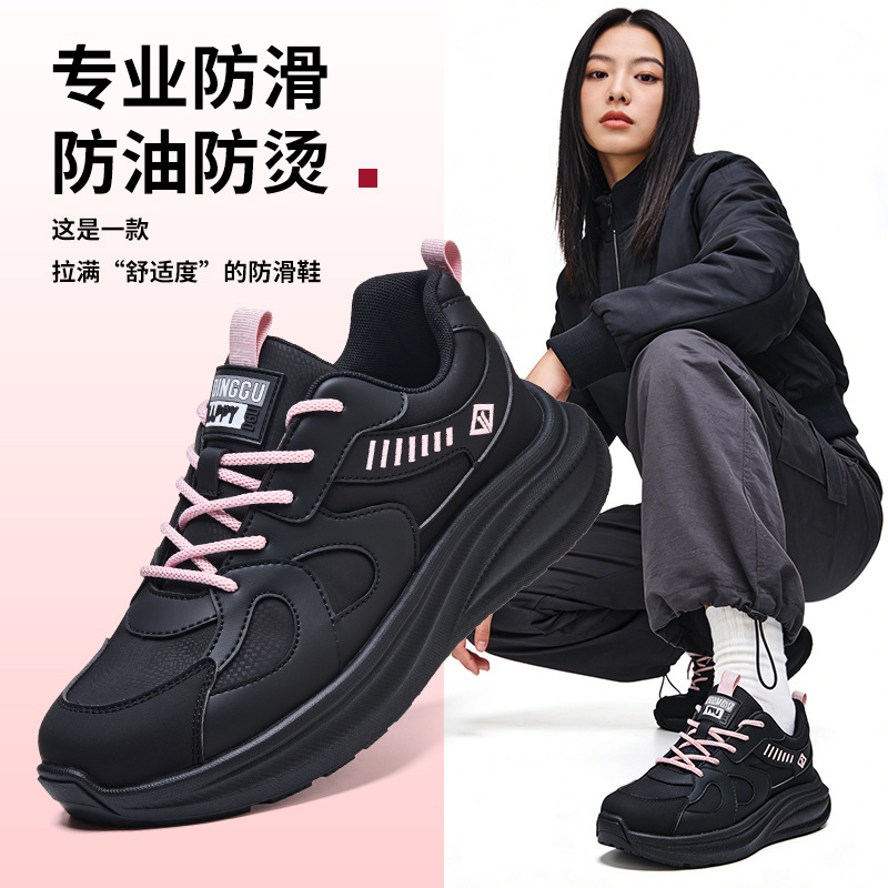 鼎固防滑厨师鞋女士透气 防滑耐磨工作鞋 厨房餐厅两用舒适安全鞋