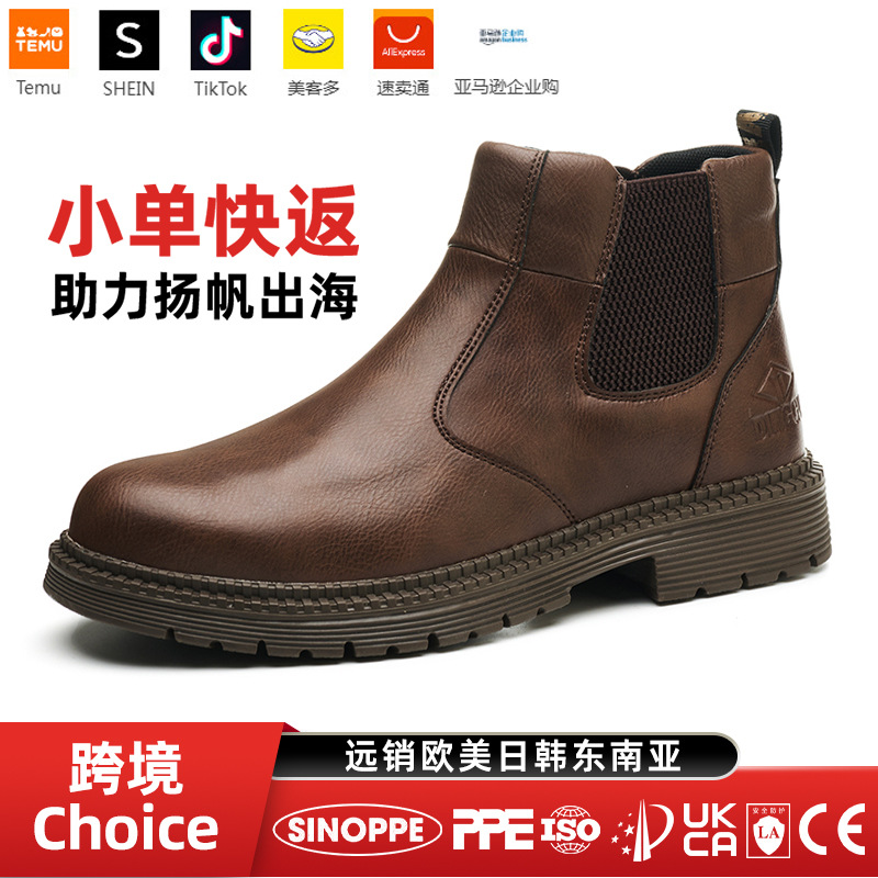 クロスボーダーchoice労働保護靴防水中実底耐摩耗防止突き防止牛革丈夫で丈夫な安全靴男