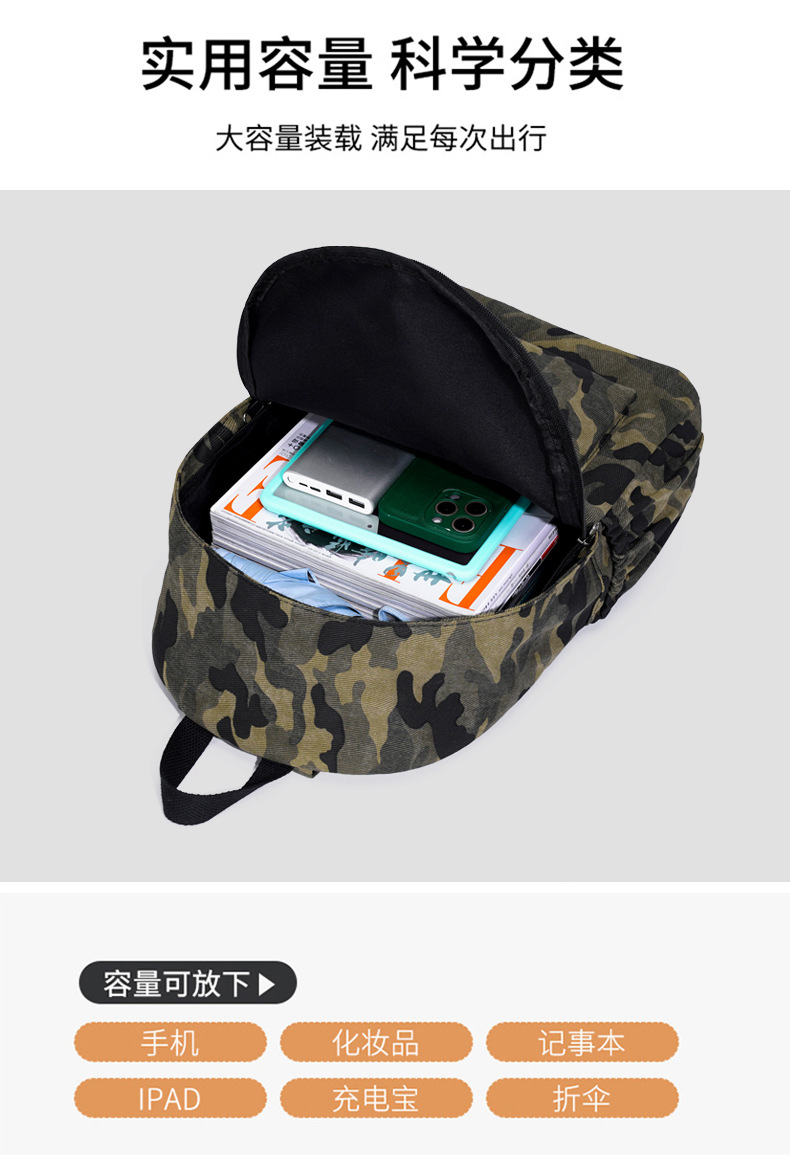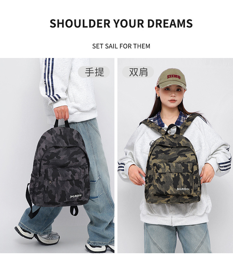 跨境新款时尚大学生书包休闲双肩背包男女通用电脑双肩包迷彩背包