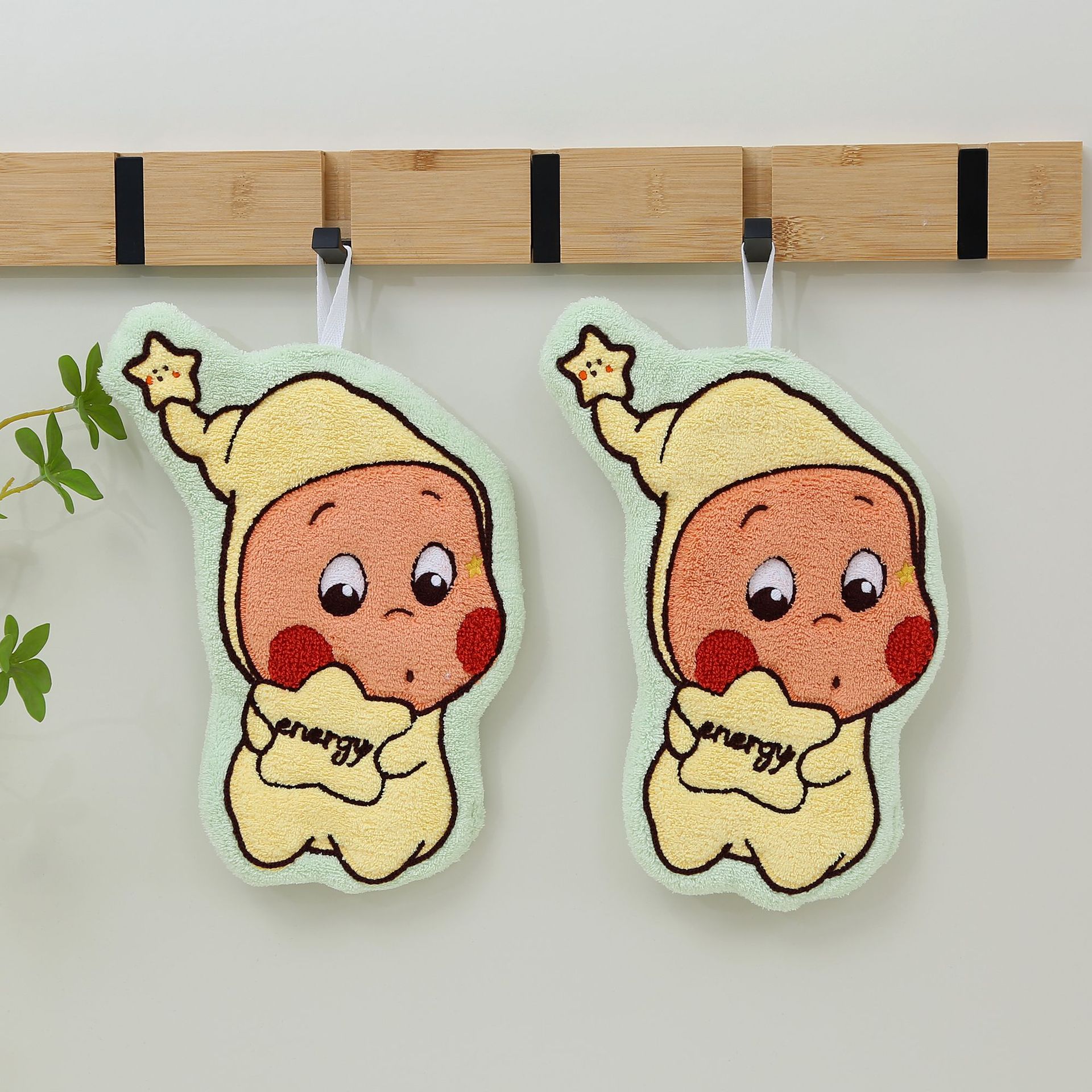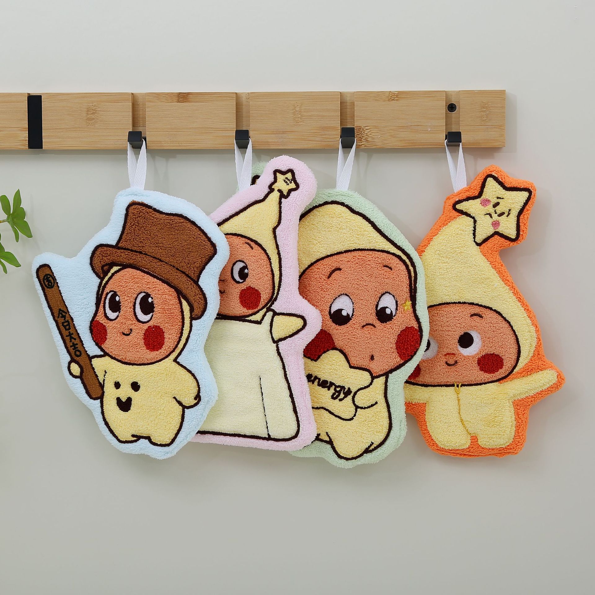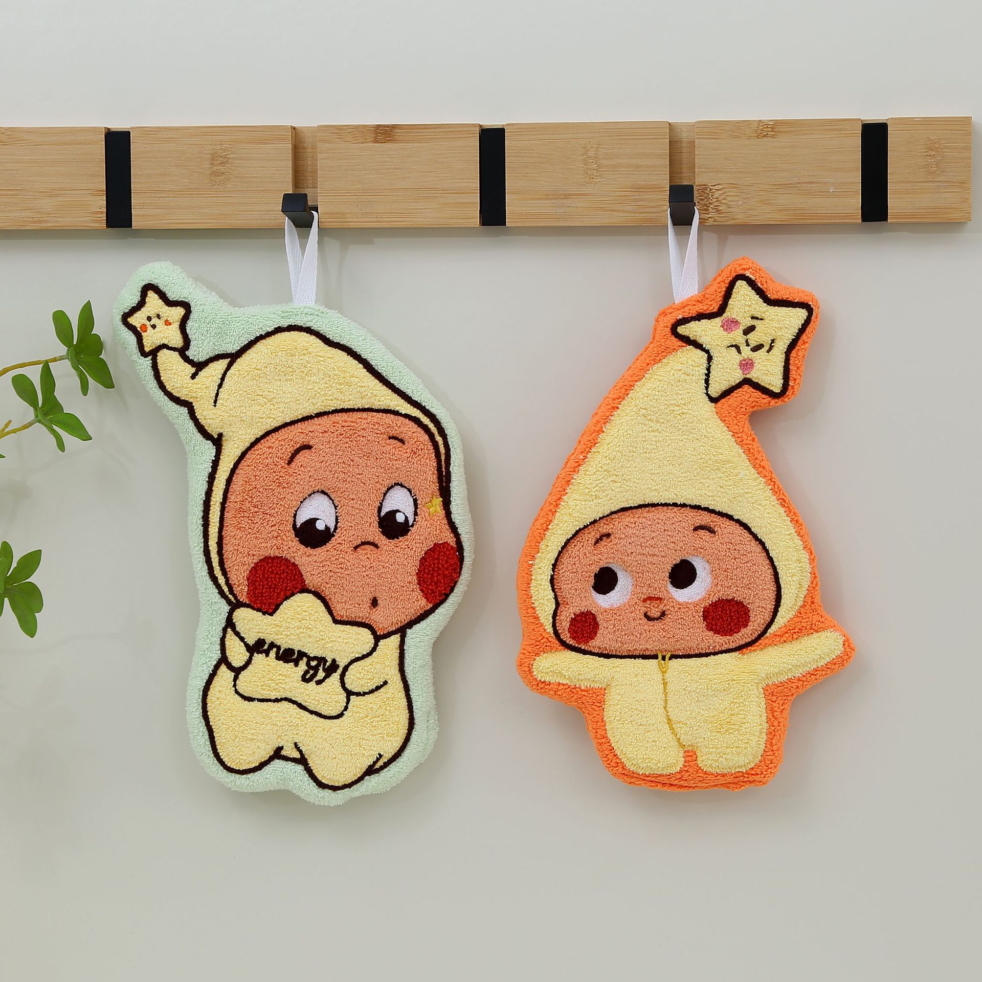 新款星星人加厚吸水儿童擦手巾批发厨房挂式抹布卡通星星人擦手巾