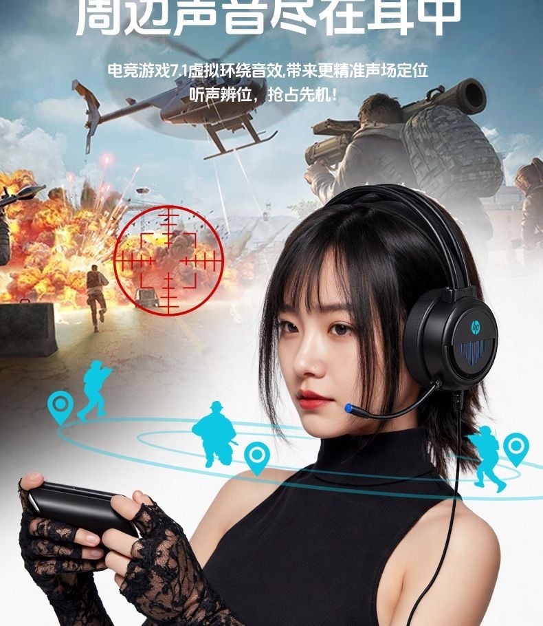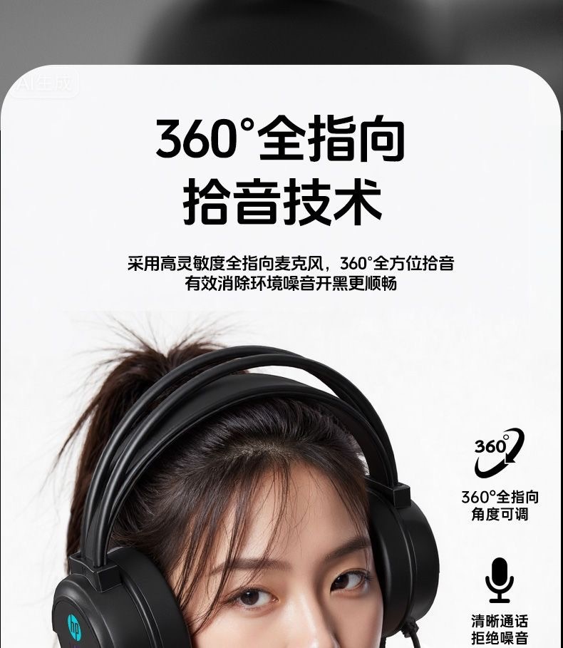 HP/惠普H100电脑耳机头戴式USB台式笔记本电脑耳麦网吧游戏