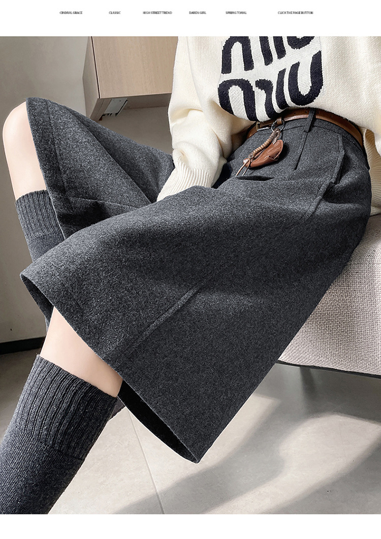 韓国系は毛のスカートを着ています。女性は小さいです。秋冬の高腰のスカートは高級感があります。