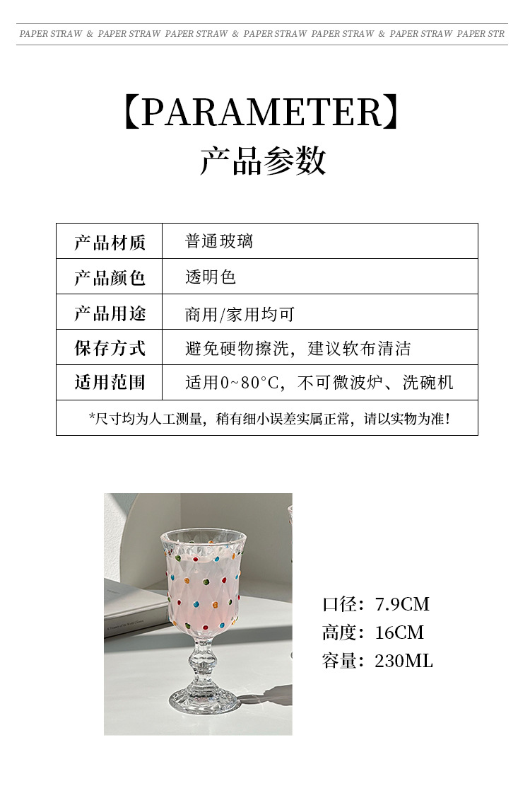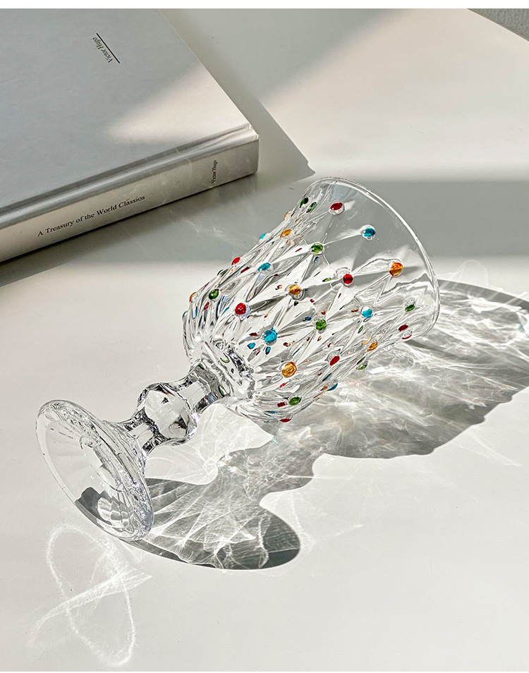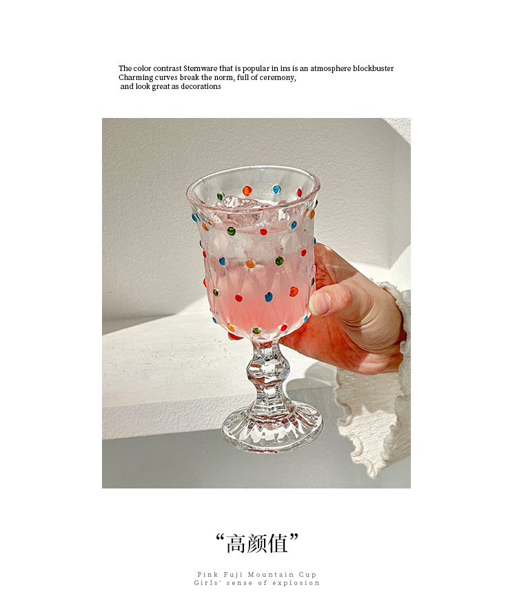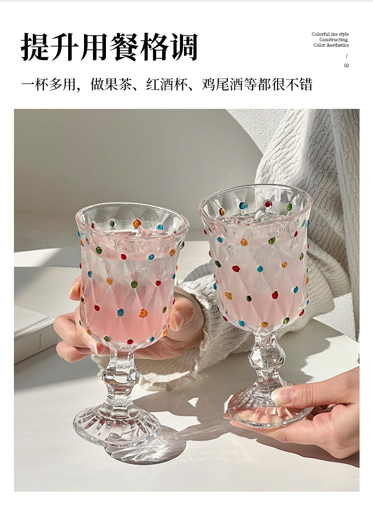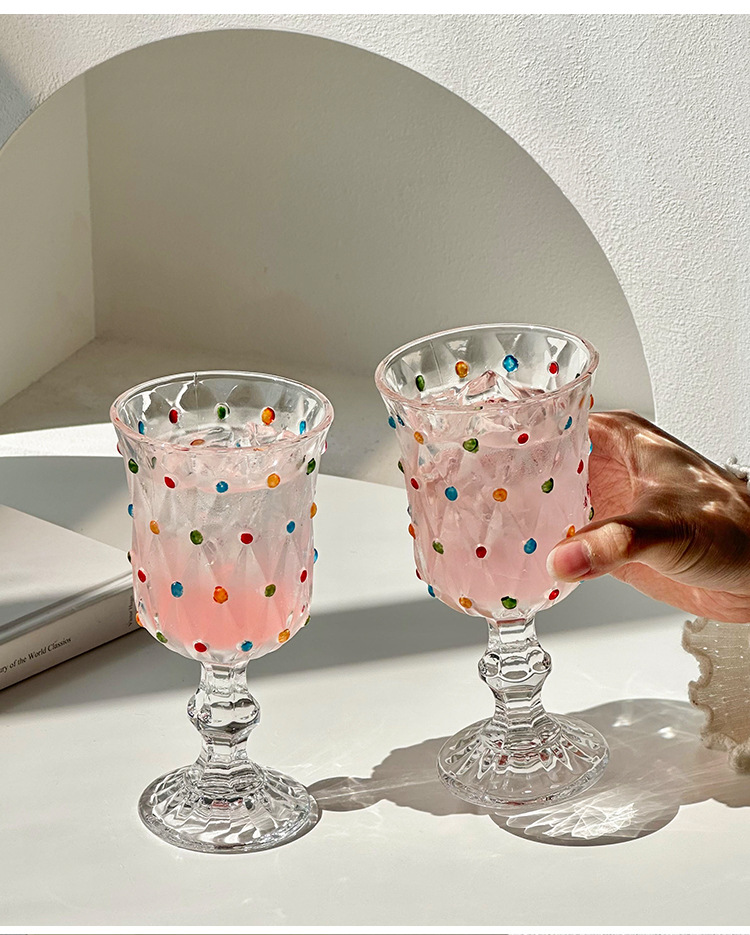 クリエイティブな小さな新鮮なカラフルな水玉模様の赤ワイングラス家庭用背の高いカクテルグラスシャンパングラスレトロな甘いワイングラス