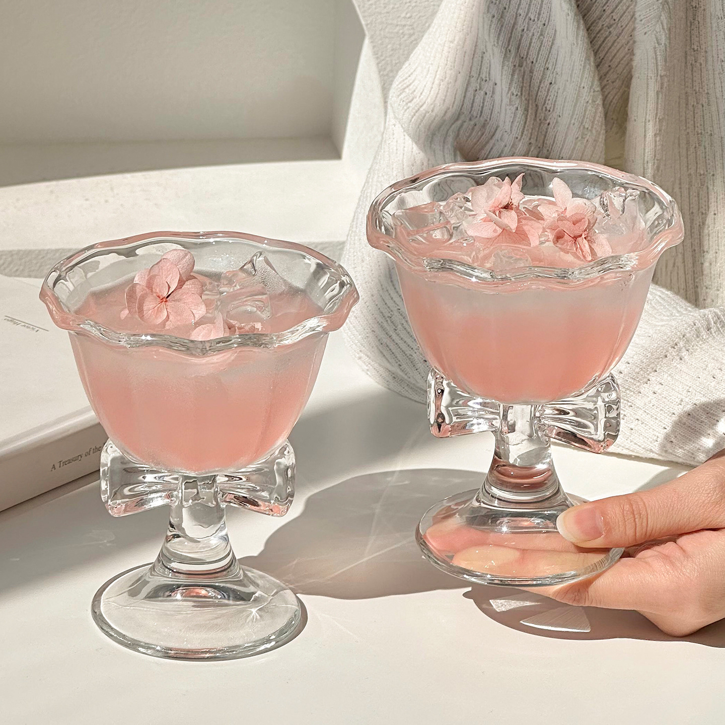 高颜值蝴蝶结雪糕杯冰淇淋高脚杯杯子玻璃杯可爱创意圣诞节礼物