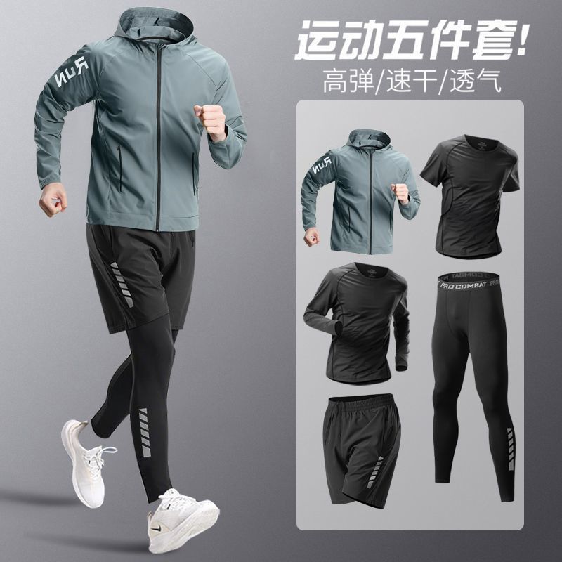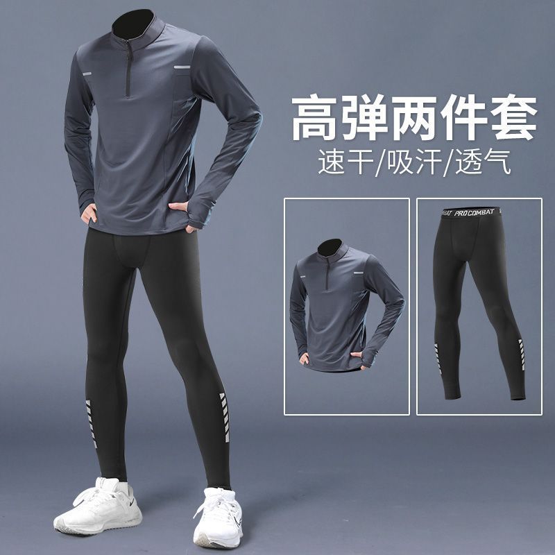 フィットネススーツ男性秋冬速乾服運動ランニング服トレーニングレオタードバスケットボール装備朝走服セット