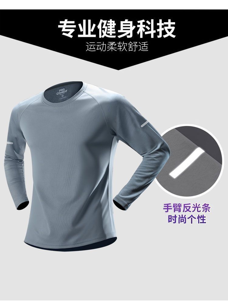 跑步运动套装男士夏季速干长袖健身房衣服贴身夏季晨跑体育生衣服