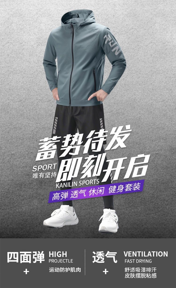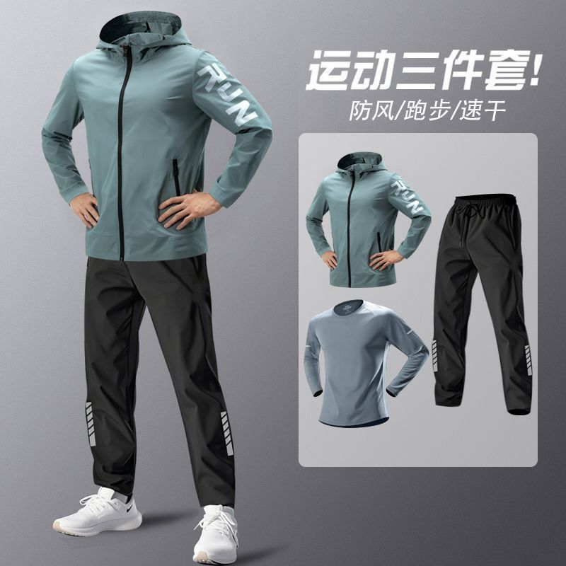 运动套装男跑步训练服健身衣服晨跑秋冬速干篮球装备冬季外套衣服