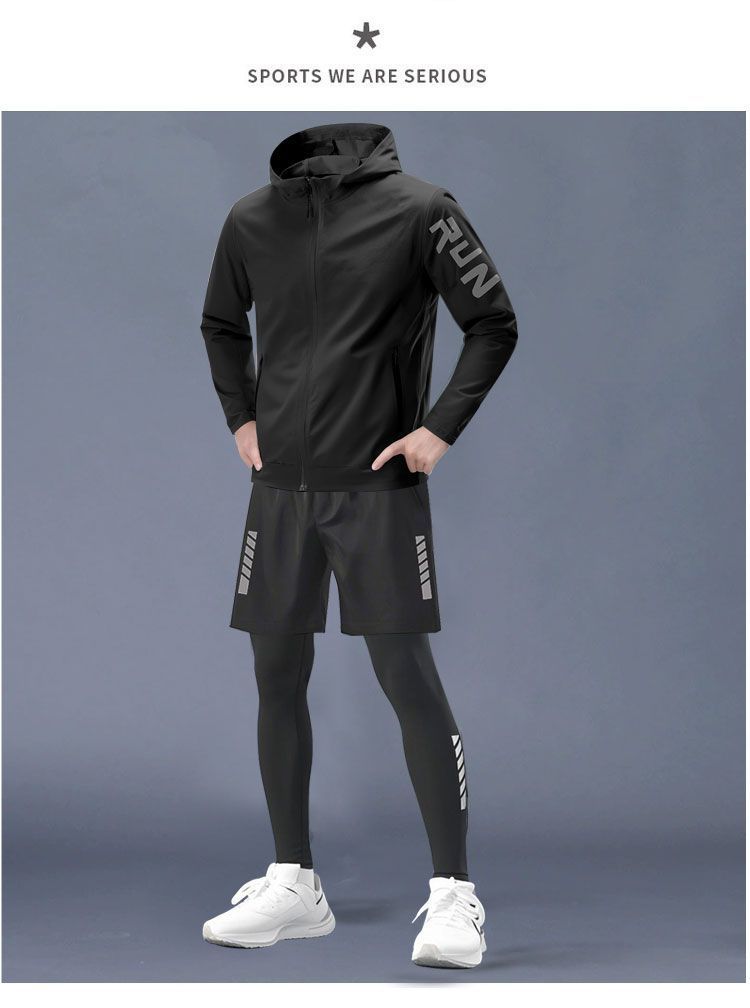 フィットネスウェア男性スポーツスーツ速乾タイツ高弾力ランニングトレーニングバスケットボール服朝走春秋騎乗服