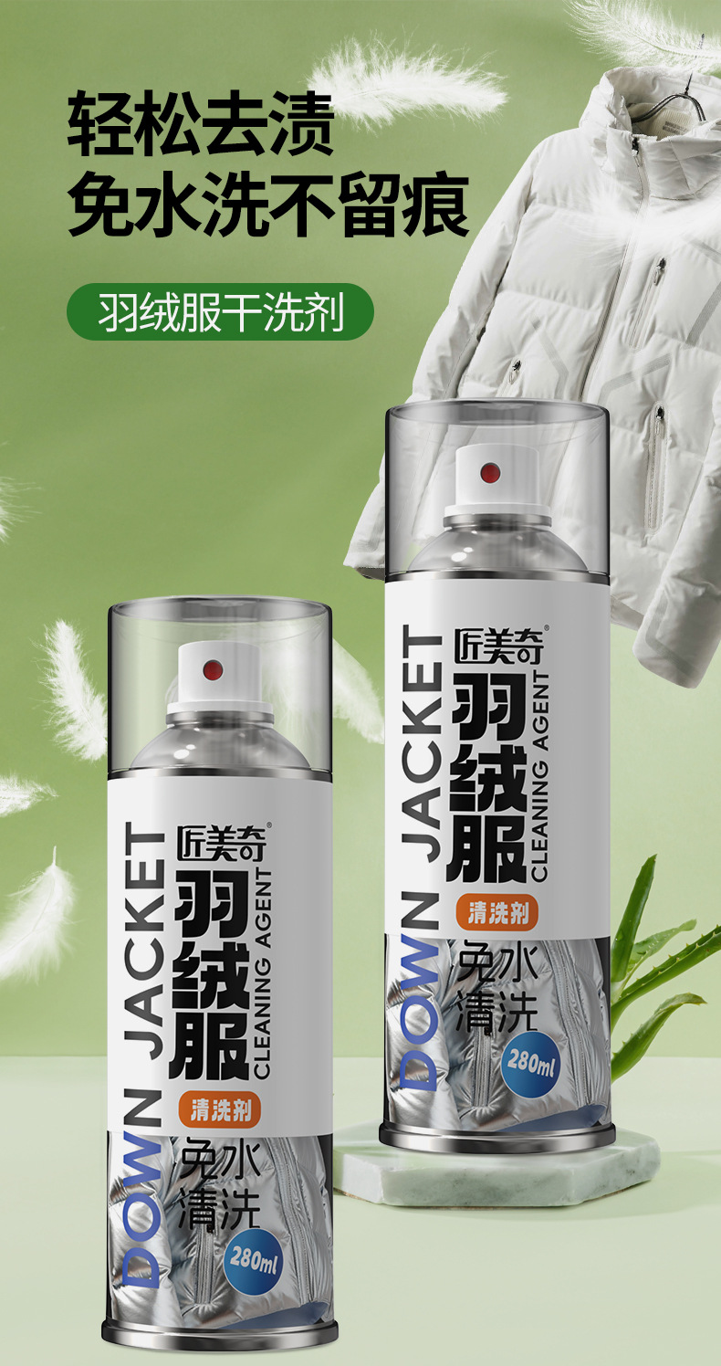 匠美奇羽绒服干洗剂清洗剂免水洗去油污污渍蓬松护绒留香清洁液