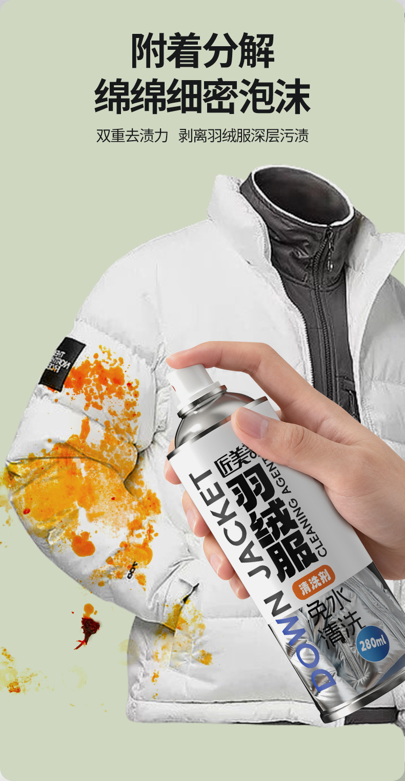 羽绒服清洗剂干洗剂家用商用免水洗去渍去油污不伤羽绒蓬松喷雾