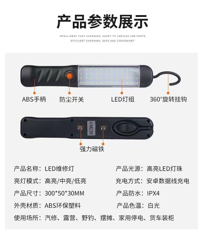 长续航3年质保双电池超亮ABSLED强磁车行维修灯手电跨境批发包邮