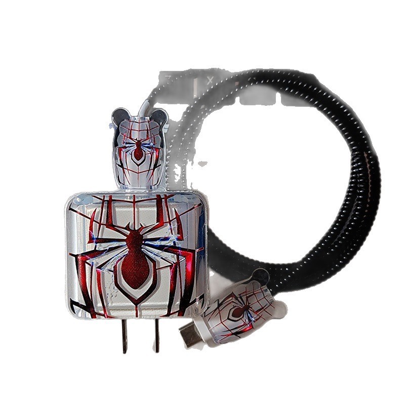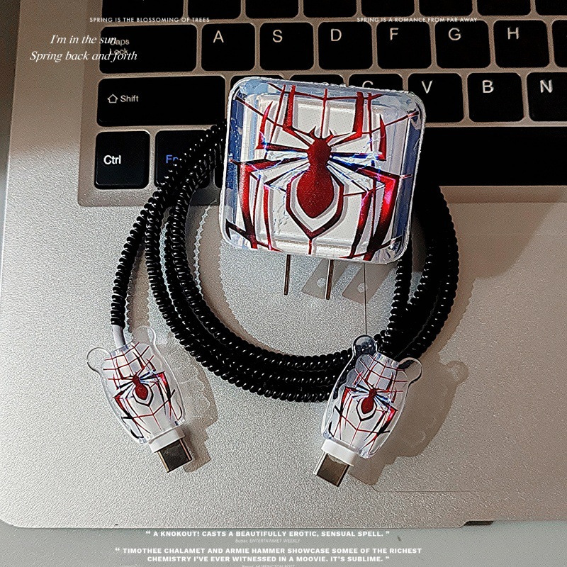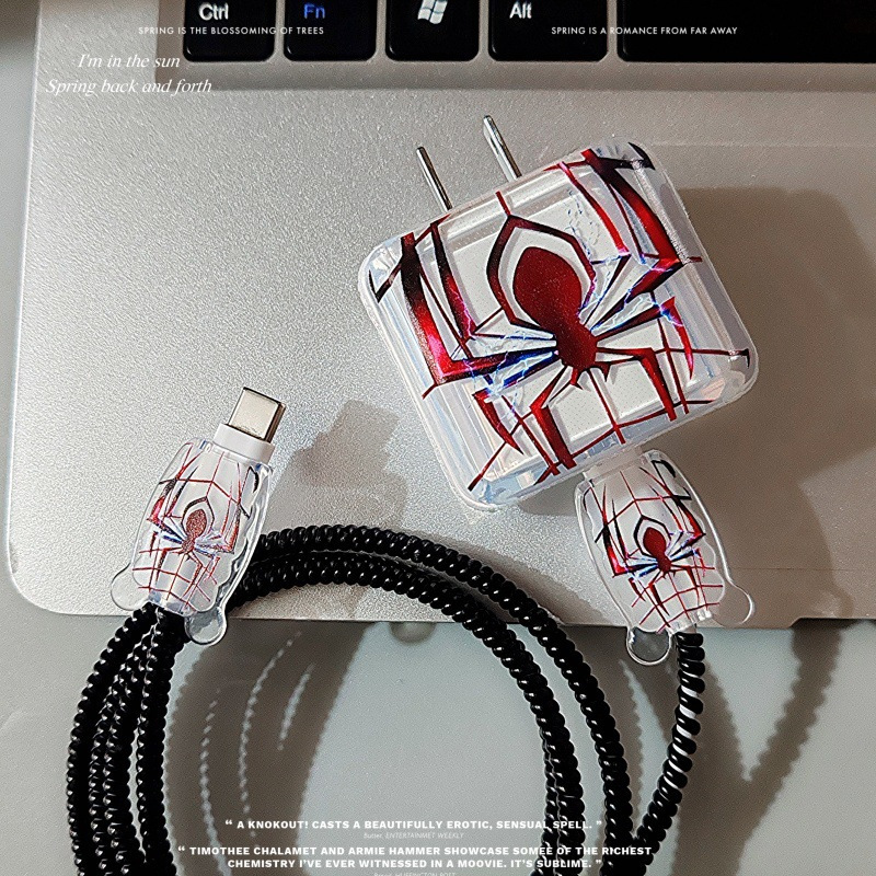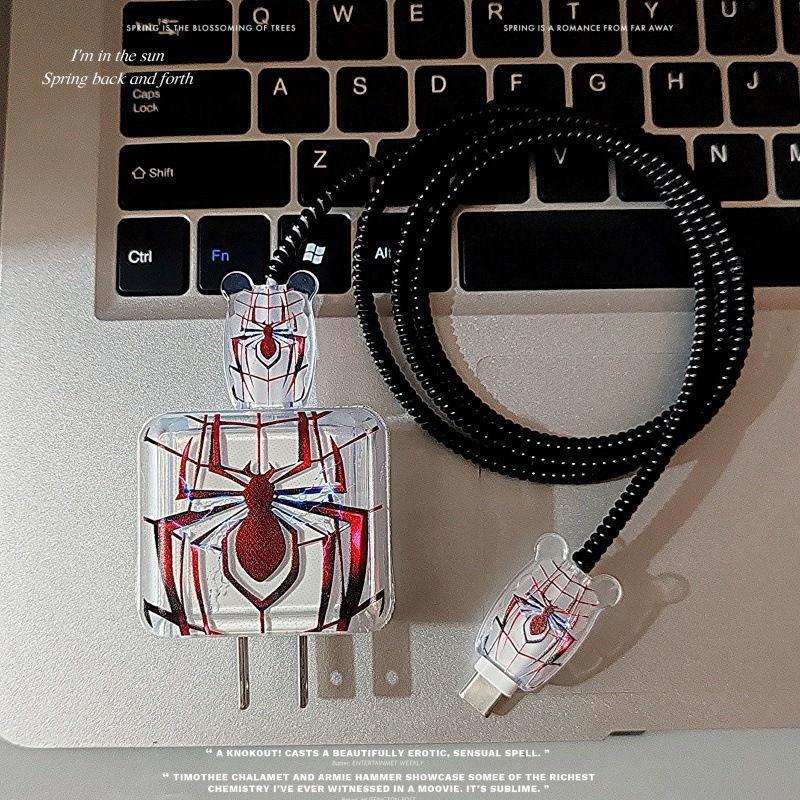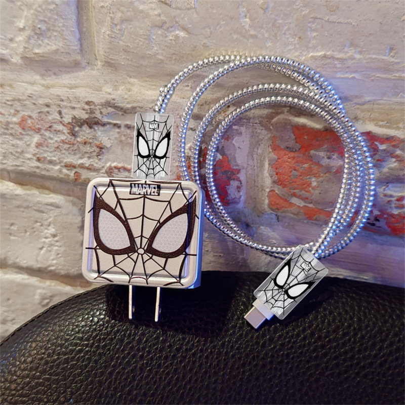 适用苹果iPhone蜘蛛侠电镀卡通充电器数据线防折断收纳保护壳套