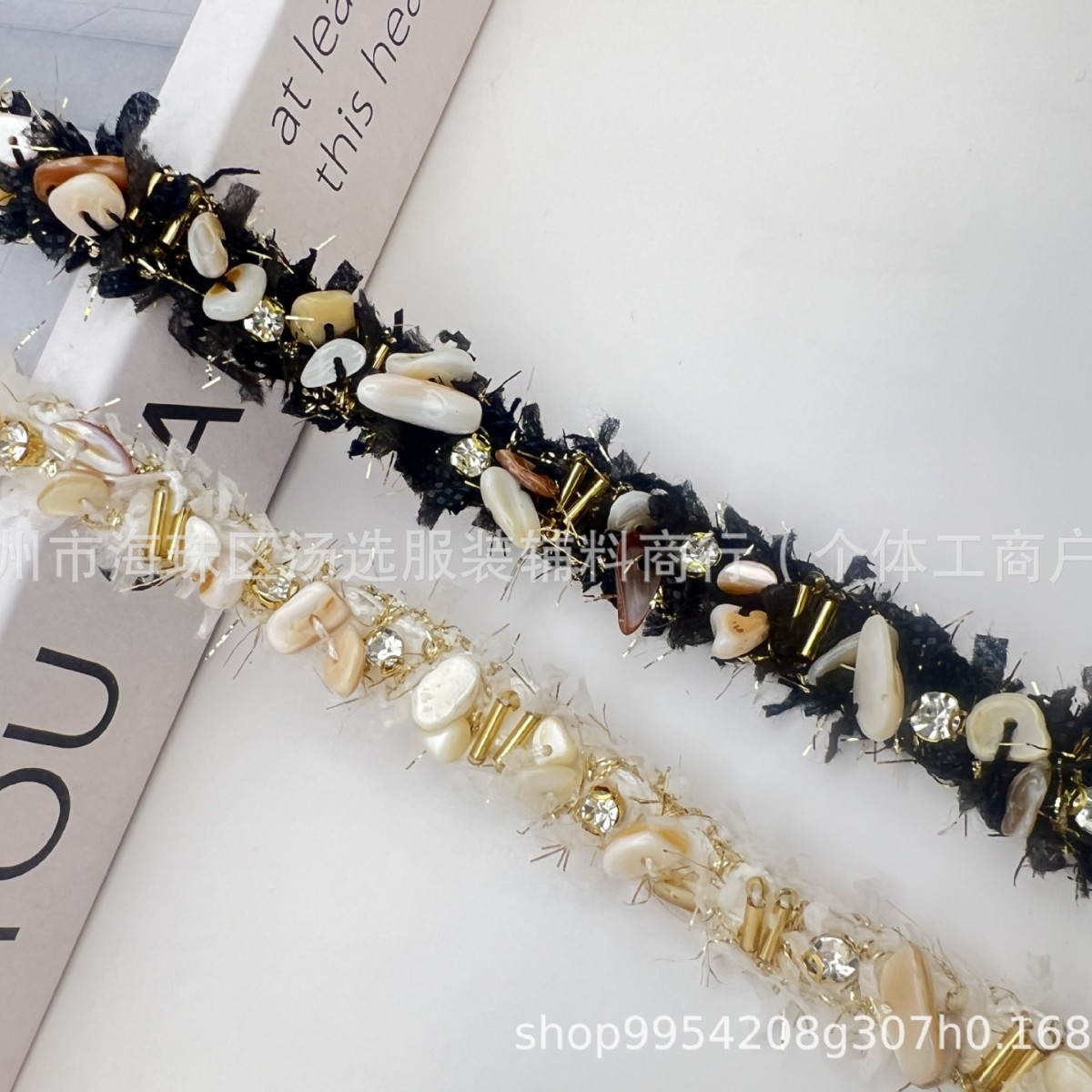 现货高端花边贝壳织带手工镶钻DIY小香风服装袖口装饰辅料