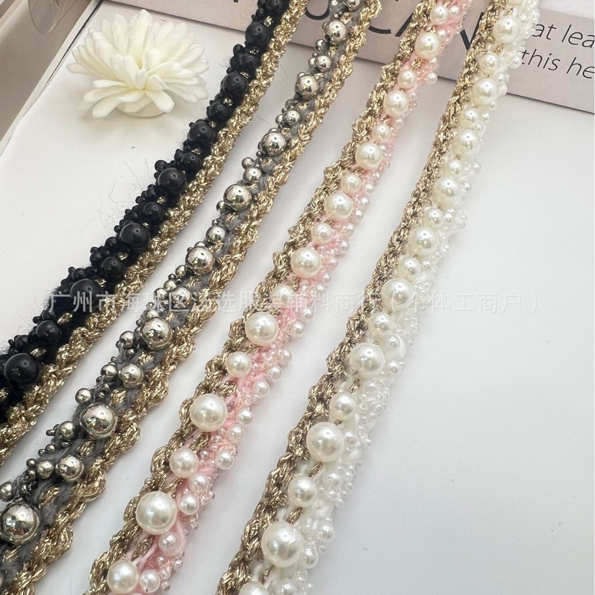 高品质手钩加珍珠小香风织带手工diy发饰衣服领口裙边窗帘辅料