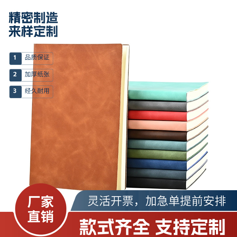 メーカーの既製ソフトレザーノートは、シンプルなビジネス会議日記、学生オフィス、ロゴが印刷された厚いノートをカスタマイズできます