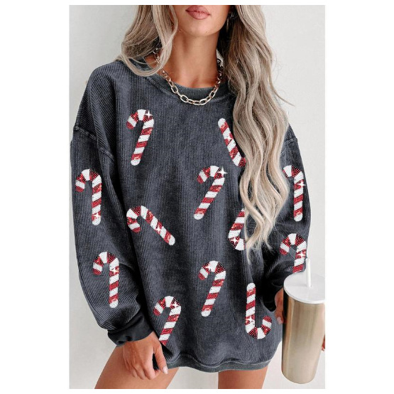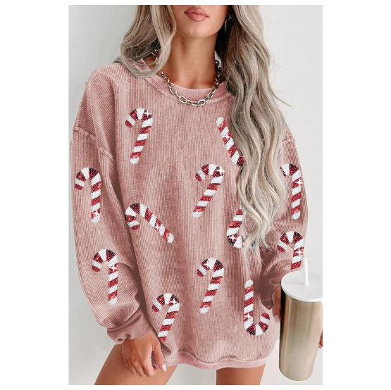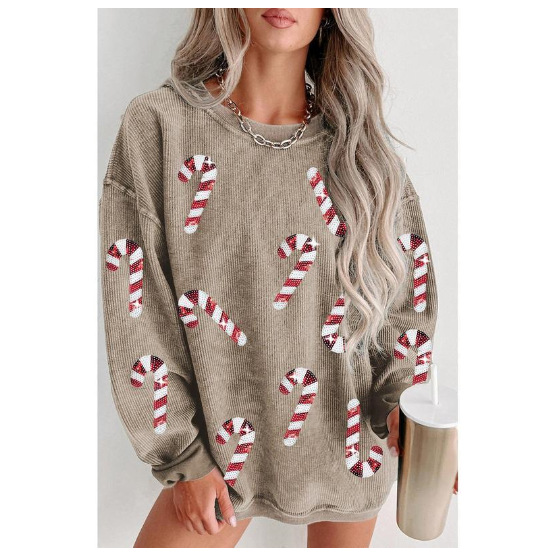 2025跨境亚马逊独立站秋冬季女士新款圣诞拐杖糖印花女士圆领卫衣