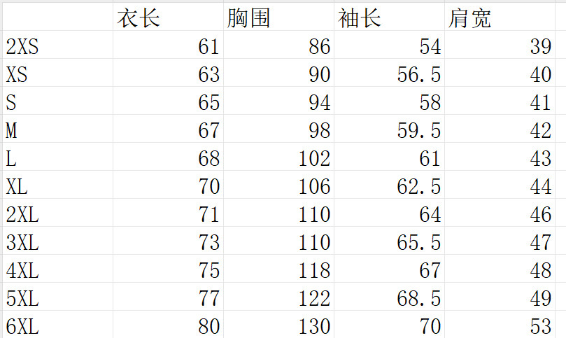 尺码 XS,S,M,L,XL,2XL,3XL,4XL,5XL