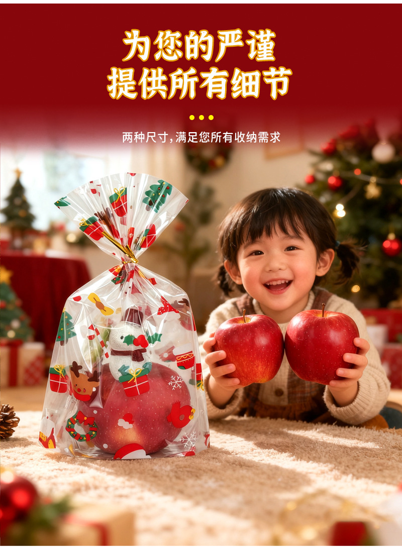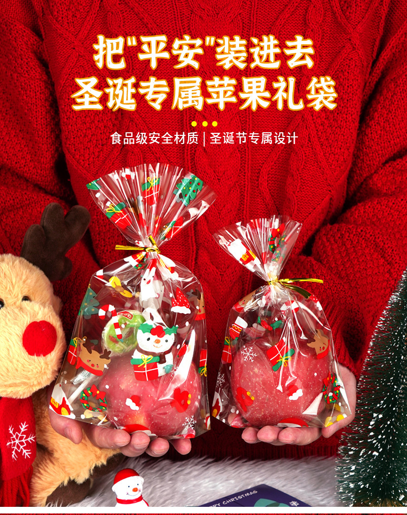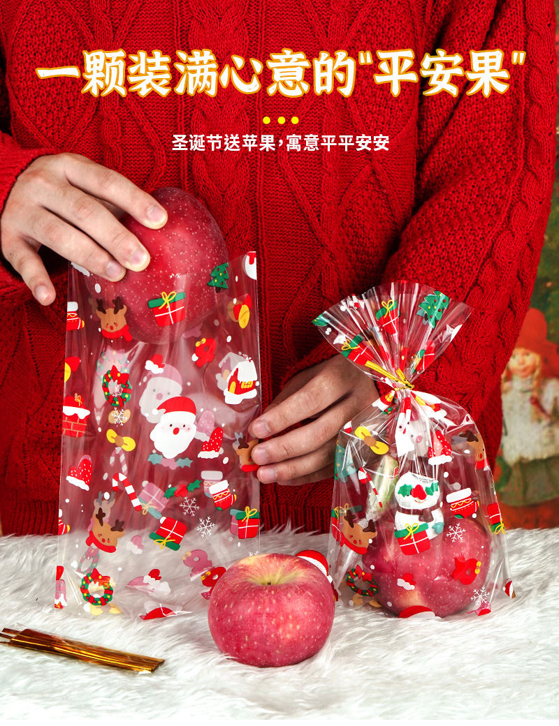 工厂直销圣诞节平安夜苹果袋可爱糖果饼干包装袋幼儿园透明礼物袋