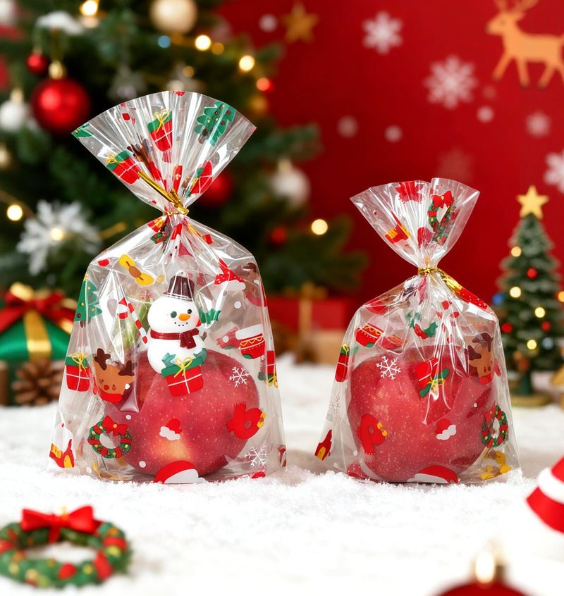 新しいクリスマスイブのリンゴ包装袋、透明なキャンディ包装袋、カップルのホリデーギフトバッグ、卸売女性向け