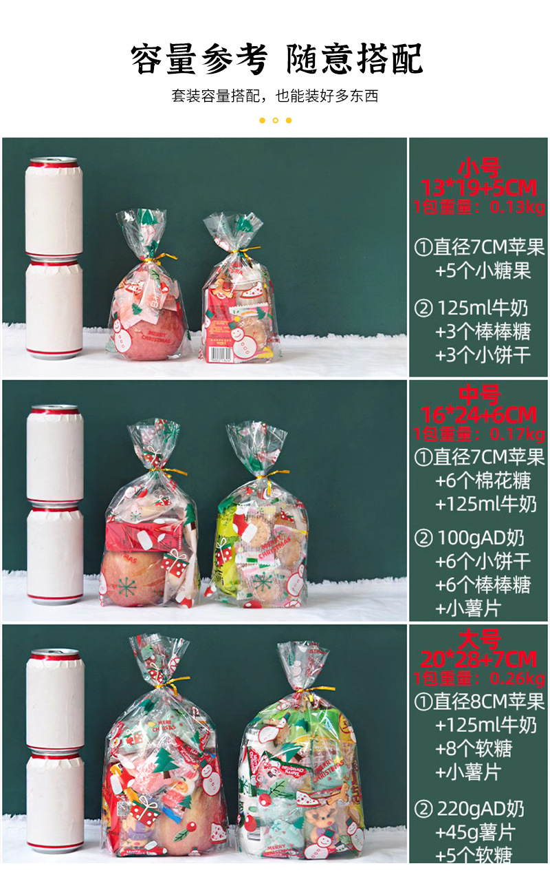 规格型号 圣诞老人款;13x19+5CM【小】,圣诞老人款;16x24+6CM【中】,圣诞老人款;20x28+7CM【大】,圣诞卡通四合一;13x19+5CM【小】,圣诞卡通四合一;16x24+6CM【中】,圣诞卡通四合一;20x28+7CM【大】,圣诞礼物款;13x19+5CM【小】,圣诞礼物款;16x24+6CM【中】,圣诞礼物款;20x28+7CM【大】,圣诞卡通袋;13x19+5CM【小】,圣诞卡通袋;16x24+6CM【中】,圣诞卡通袋;20x28+7CM【大】,圣诞姜饼人;13x19+5CM【小】,圣诞姜饼人;16x24+6CM【中】,圣诞姜饼人;20x28+7CM【大】