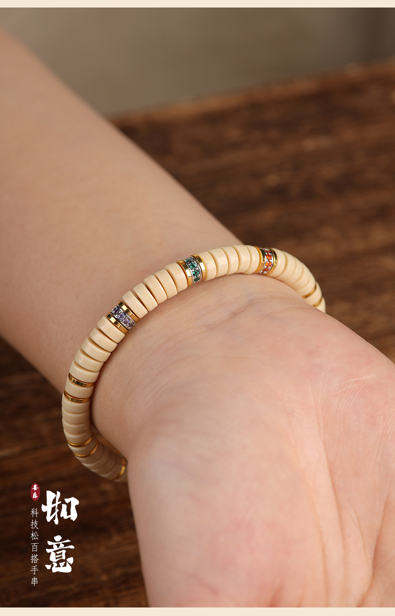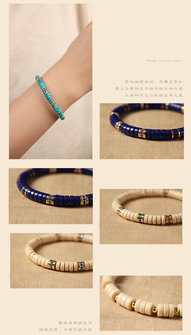 小红薯同款科技松手链禅意猛犸牙色手串复古青金色蓝松色配饰男女