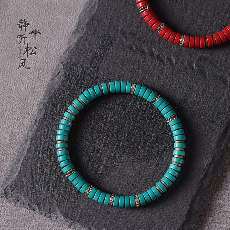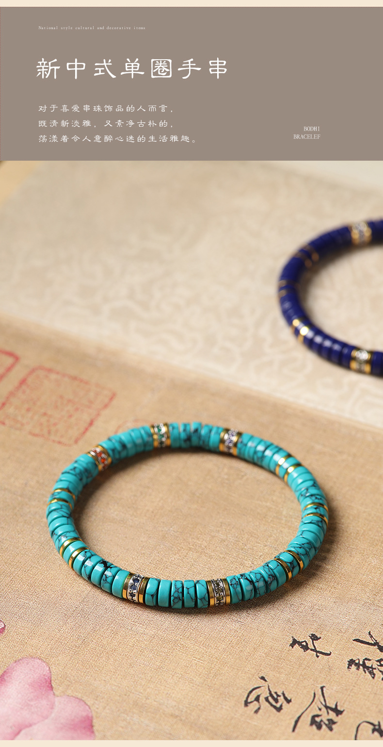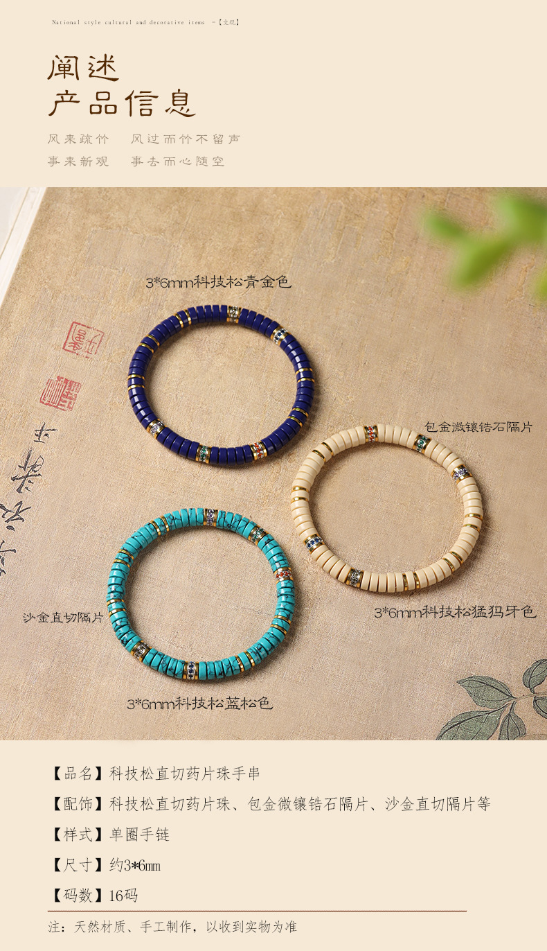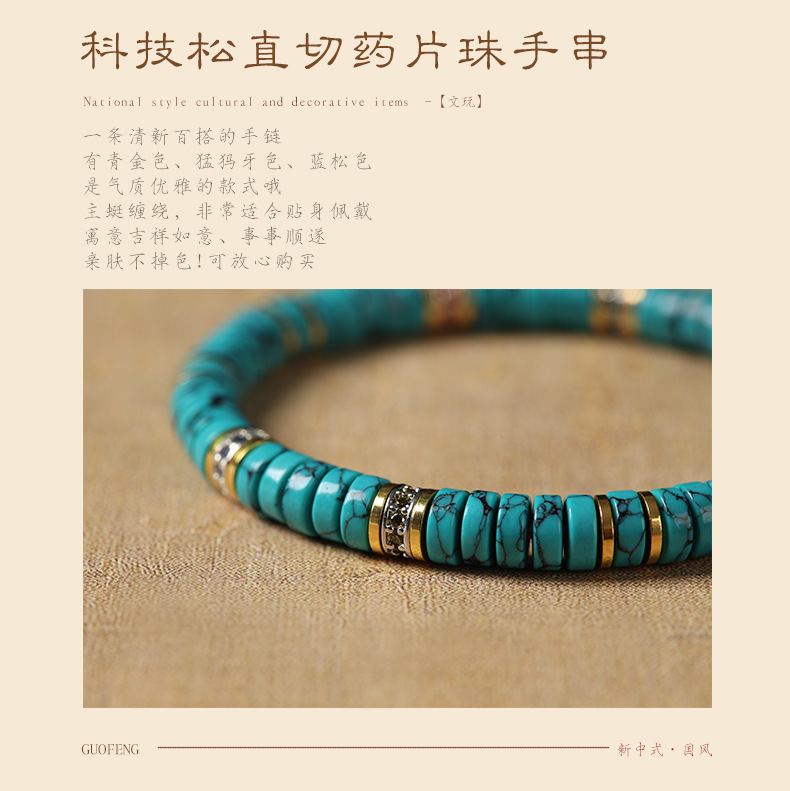 直切药片珠丨国潮科技松手串猛犸牙色蓝松色手链设计感青金色饰品