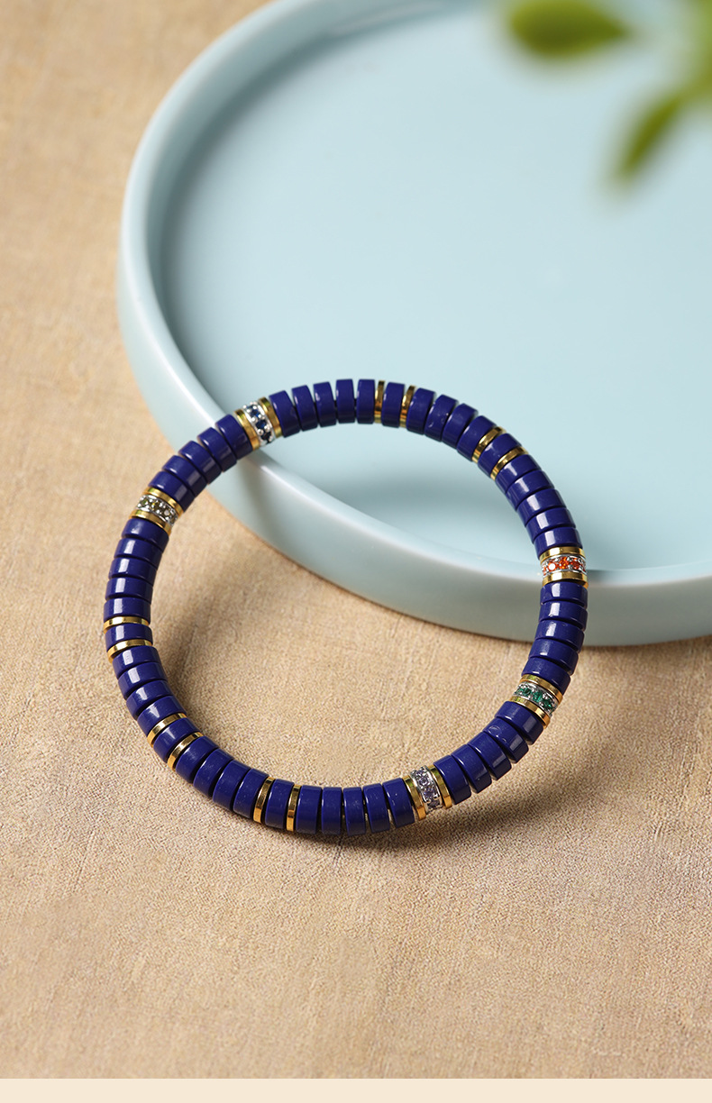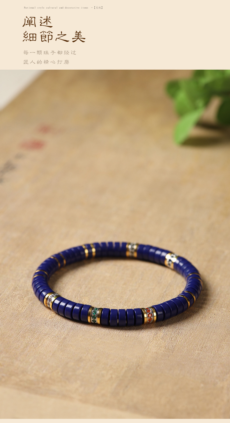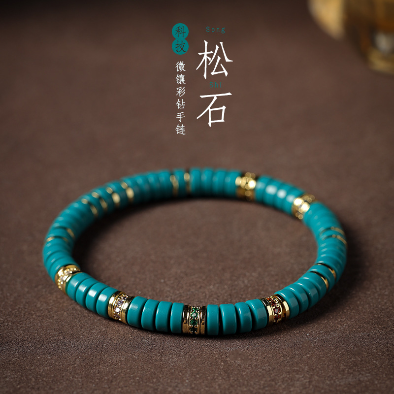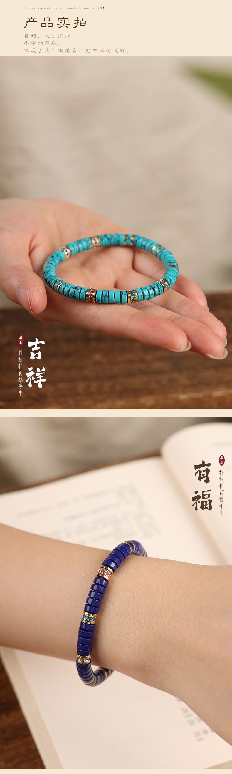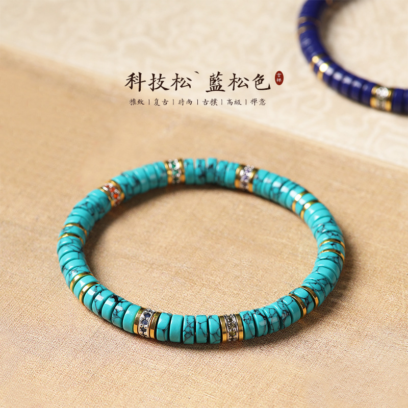 科技松手链青金色时尚百搭手链蓝松色原创饰品猛犸牙色直切药片珠