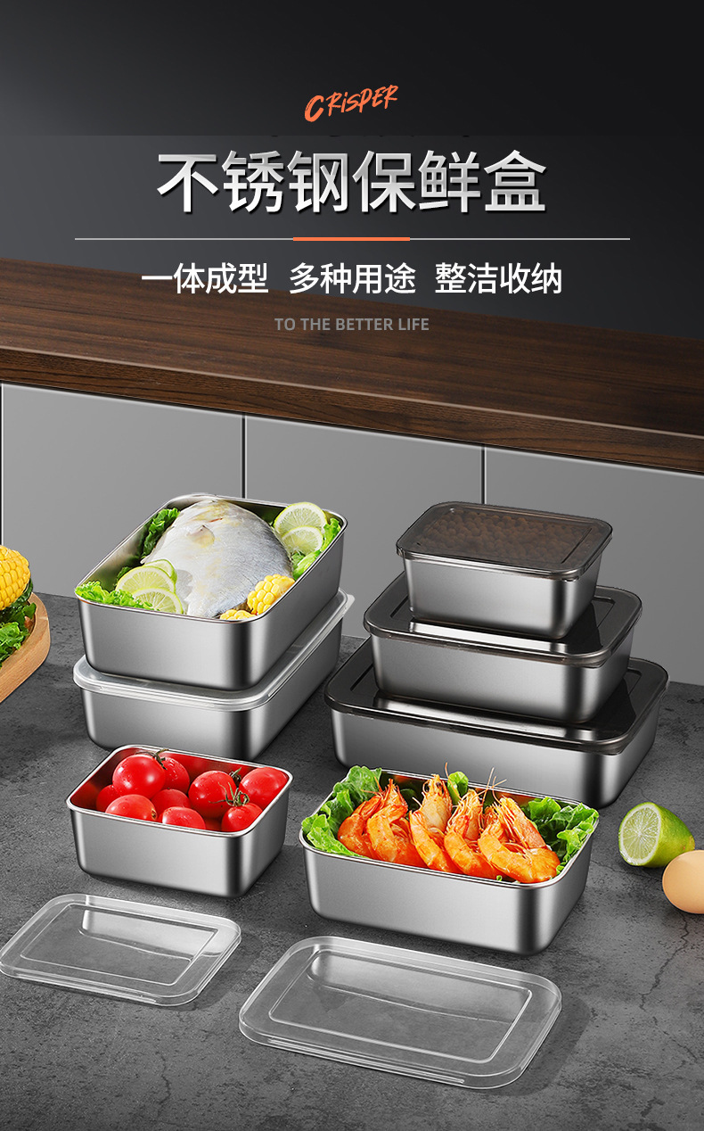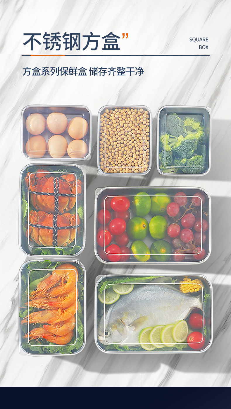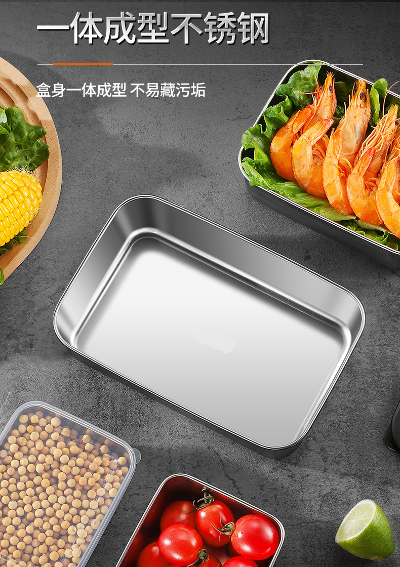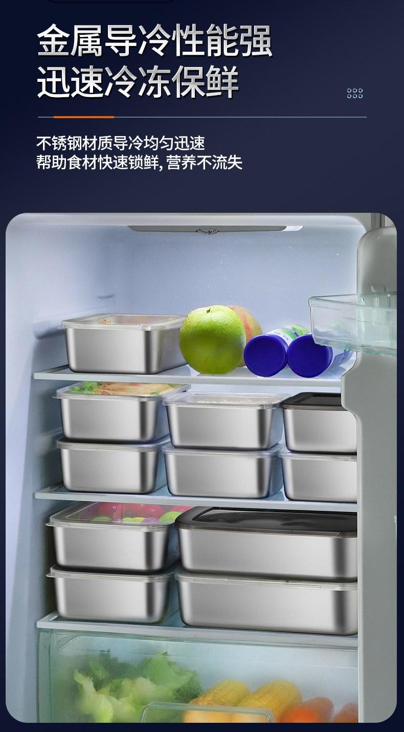 不锈钢保鲜盒带盖防溢防漏便当饭盒冰箱冷冻收纳盒分装餐盒留样盒